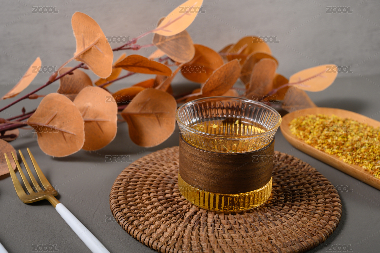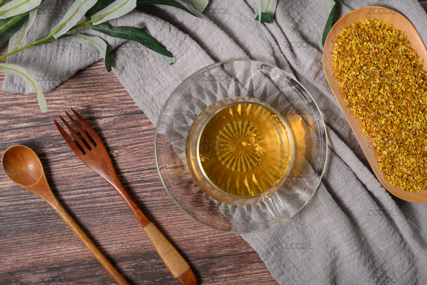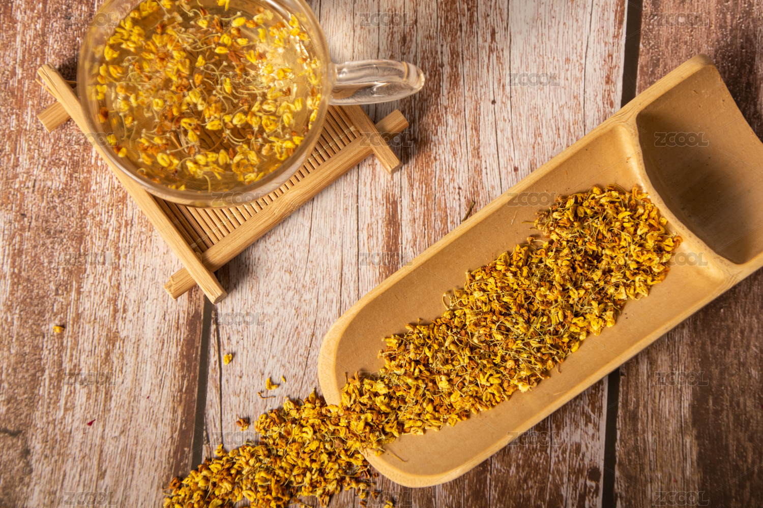木紋桌子上的桂花茶
