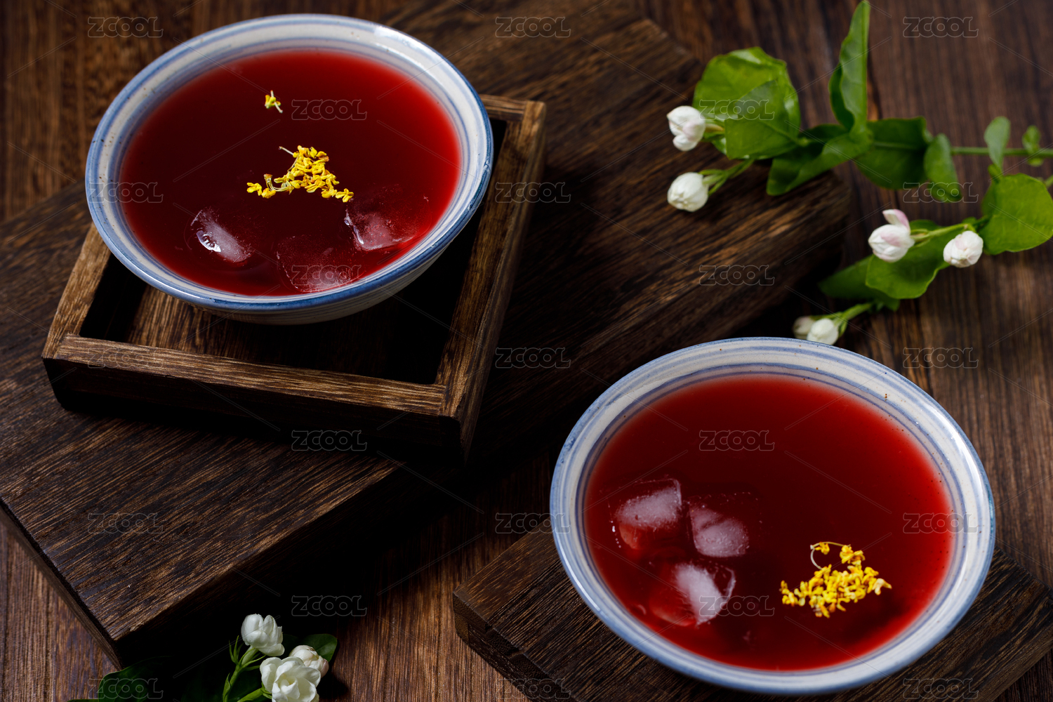 放在棕色木桌上的中國(guó)夏季飲品冰桂花酸梅湯