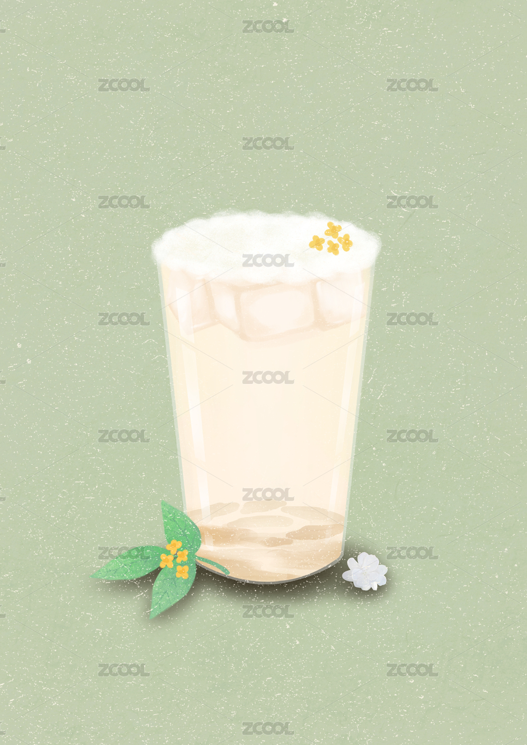 南方桂花酸梅湯的水彩素材