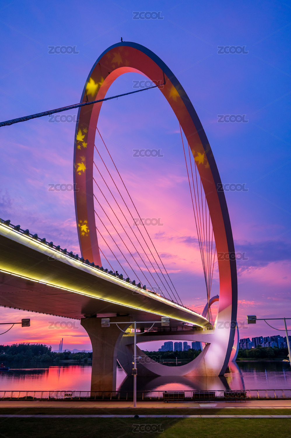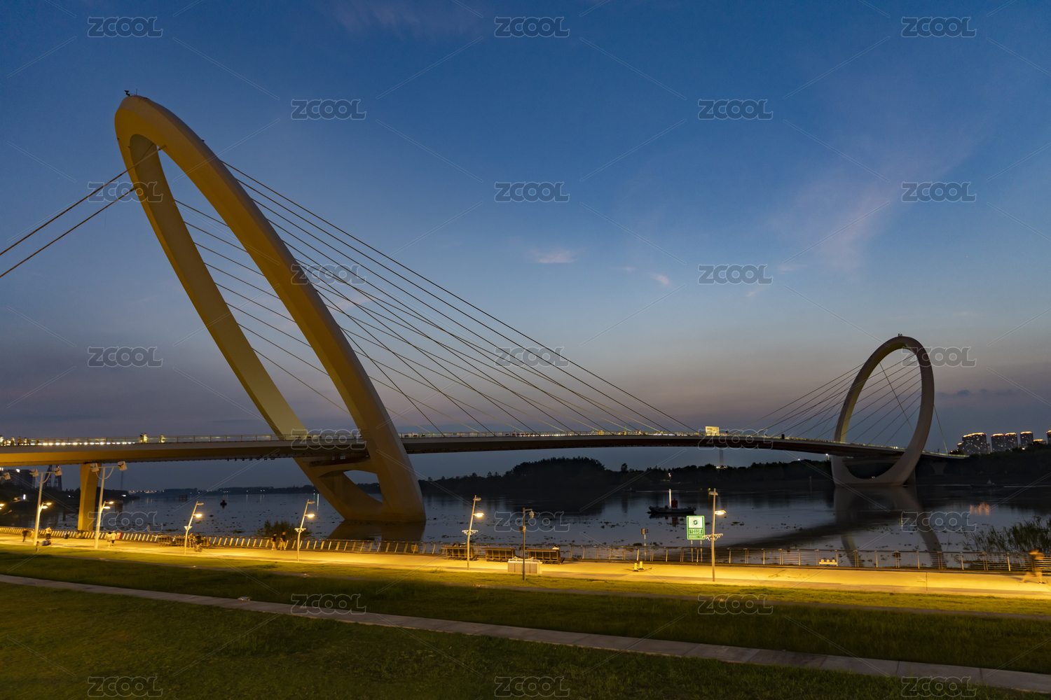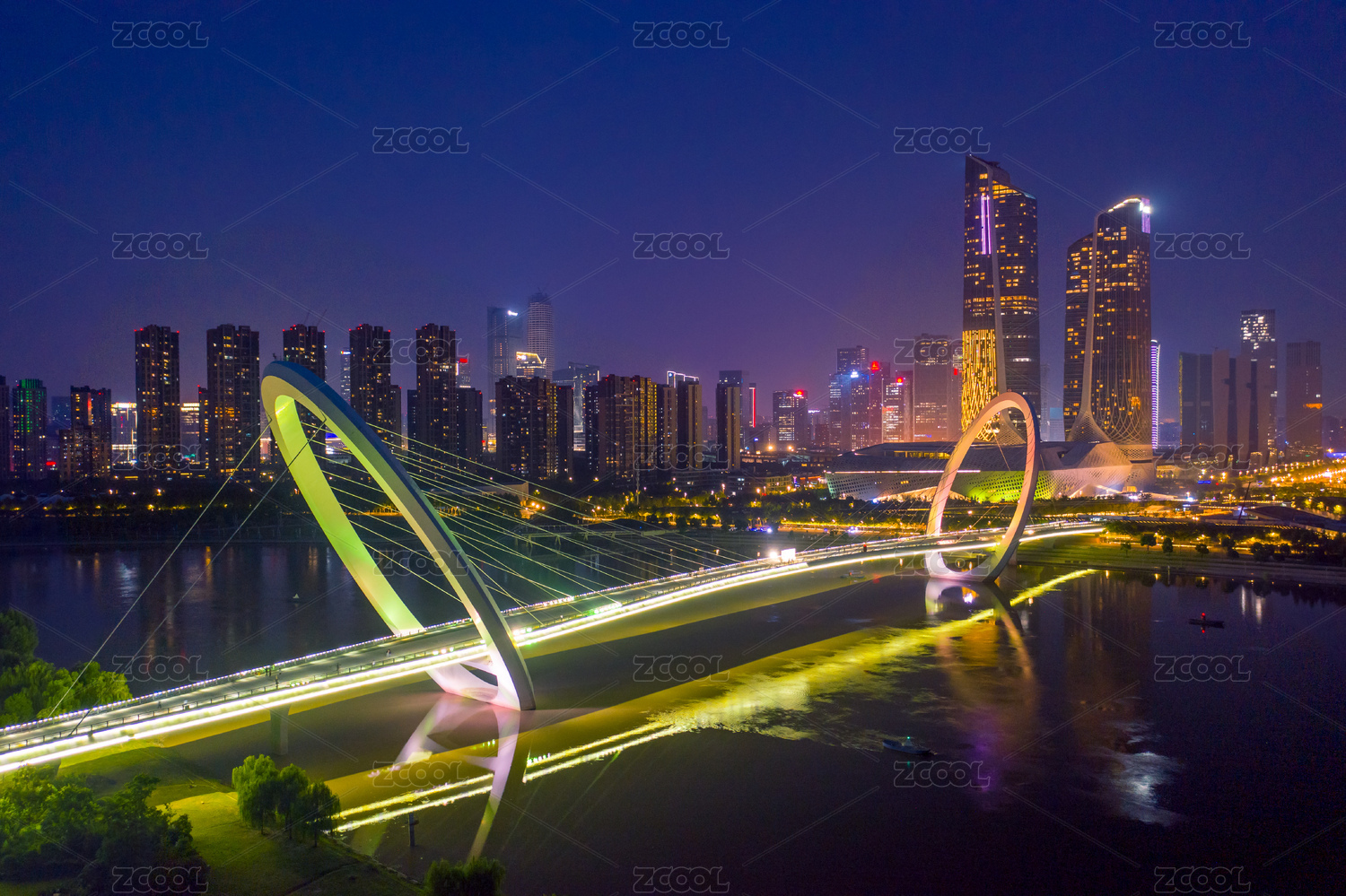 江蘇南京河西區(qū)南京眼步行橋城市夜景