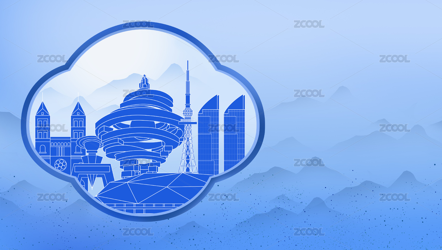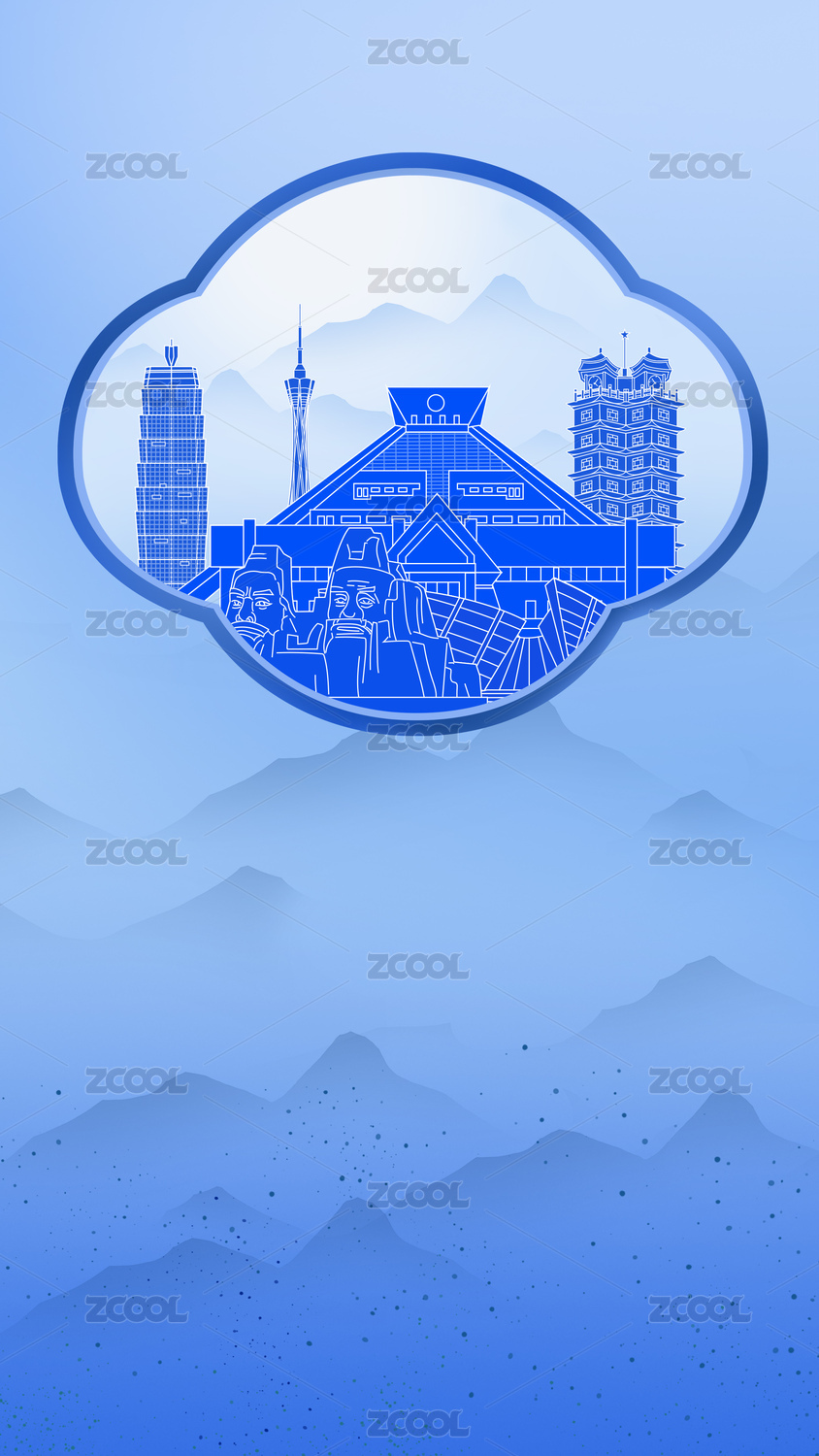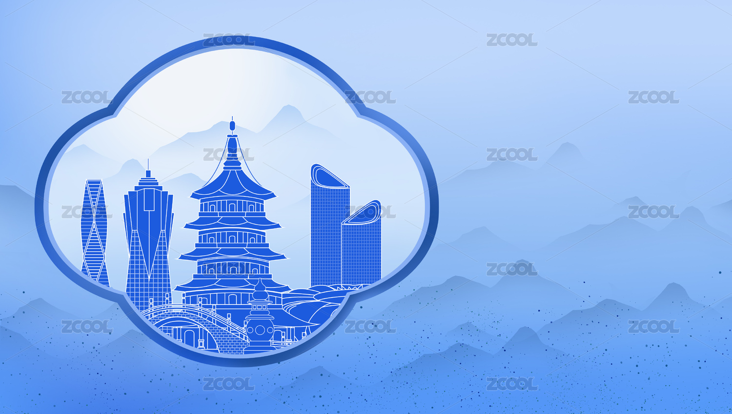 中國香港藍(lán)色青花瓷古典山水畫淡雅山峰窗戶