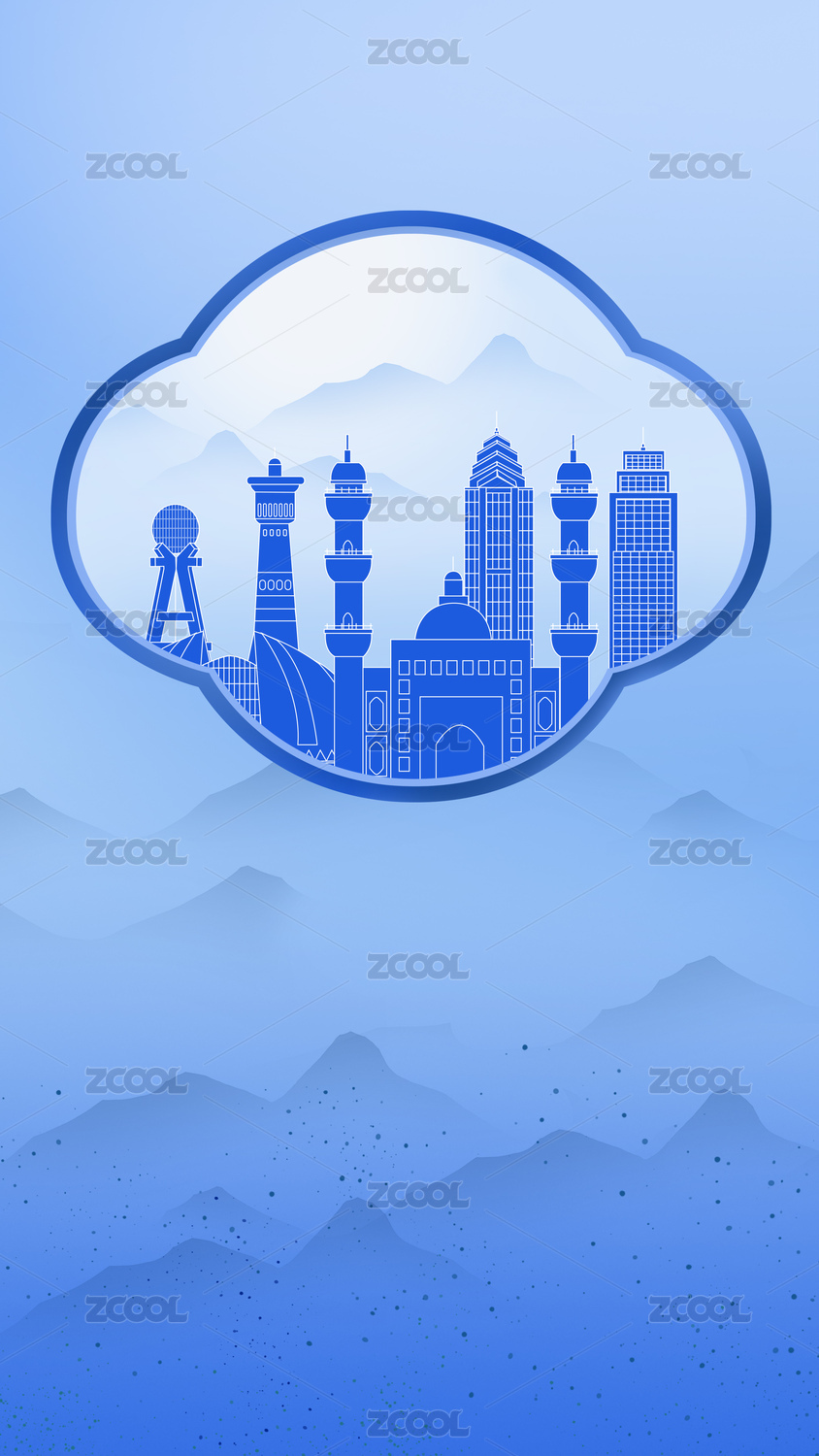 中國新疆藍(lán)色青花瓷古典山水畫淡雅山峰窗戶