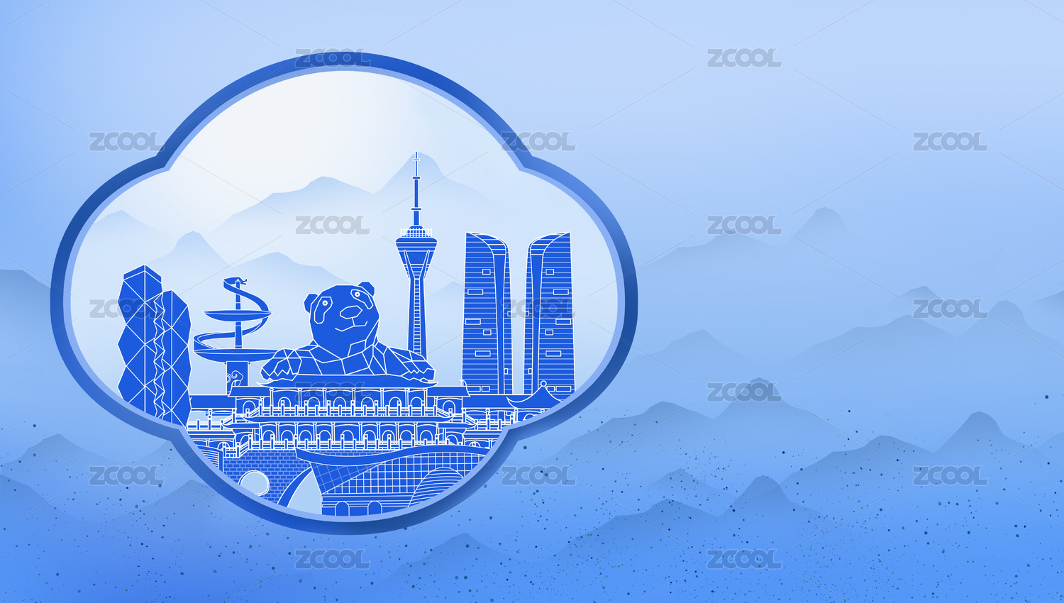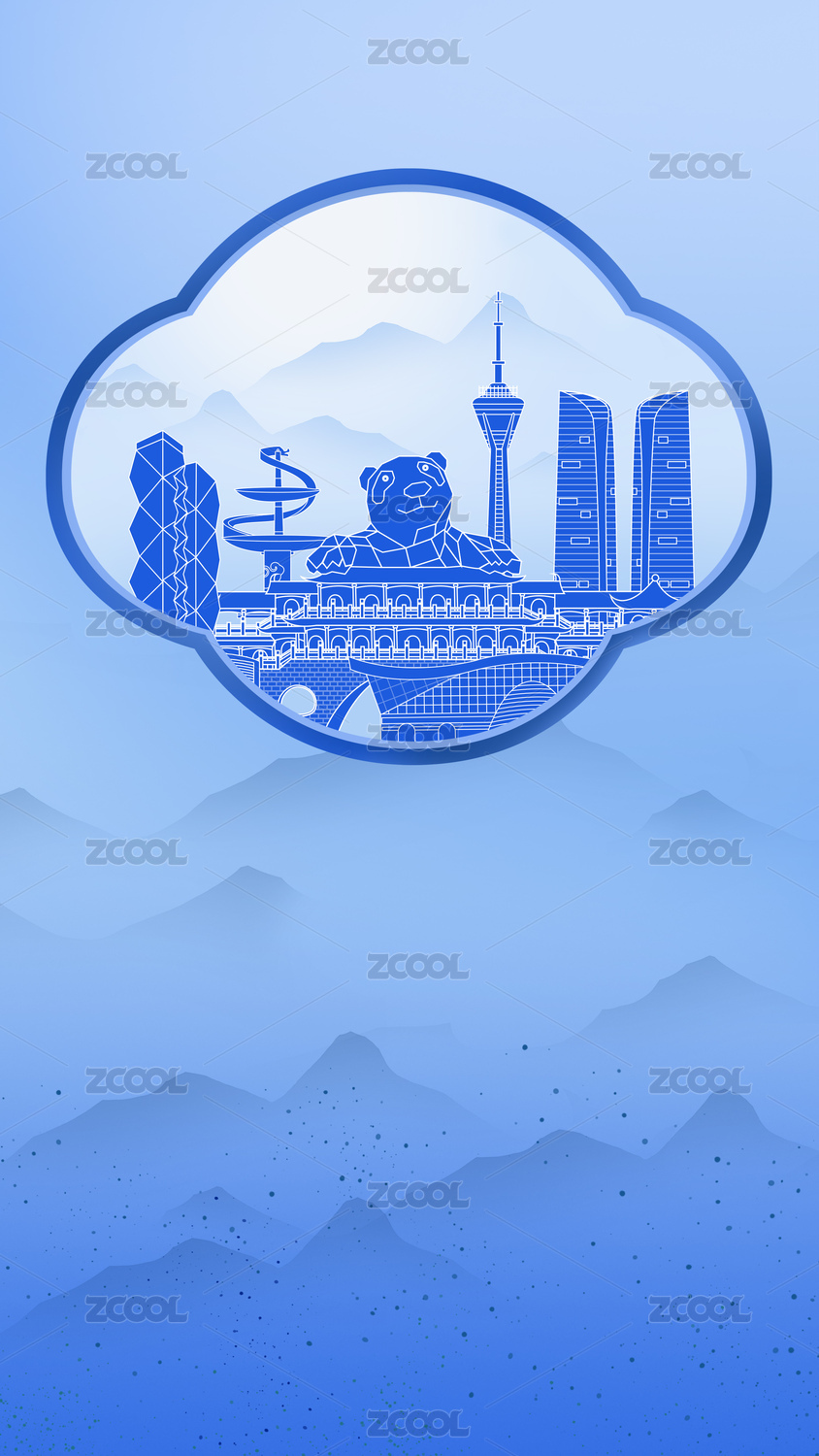 成都藍(lán)色青花瓷古典山水畫淡雅山峰窗戶景觀