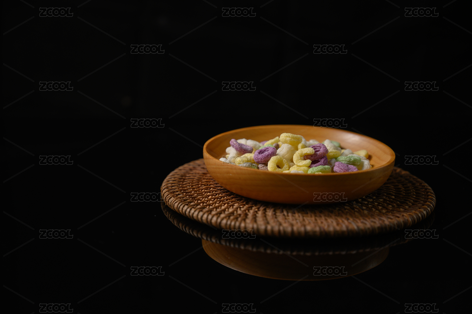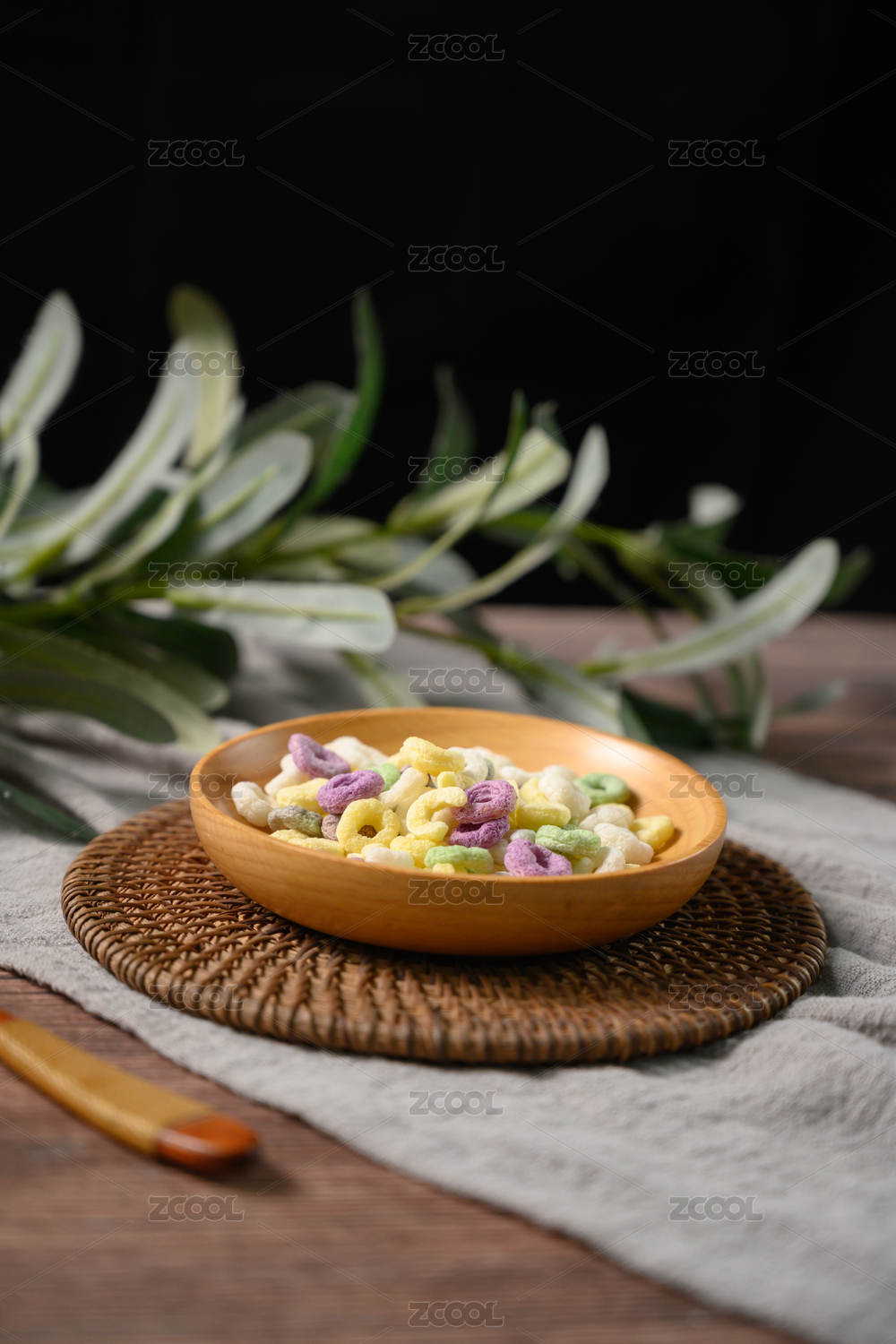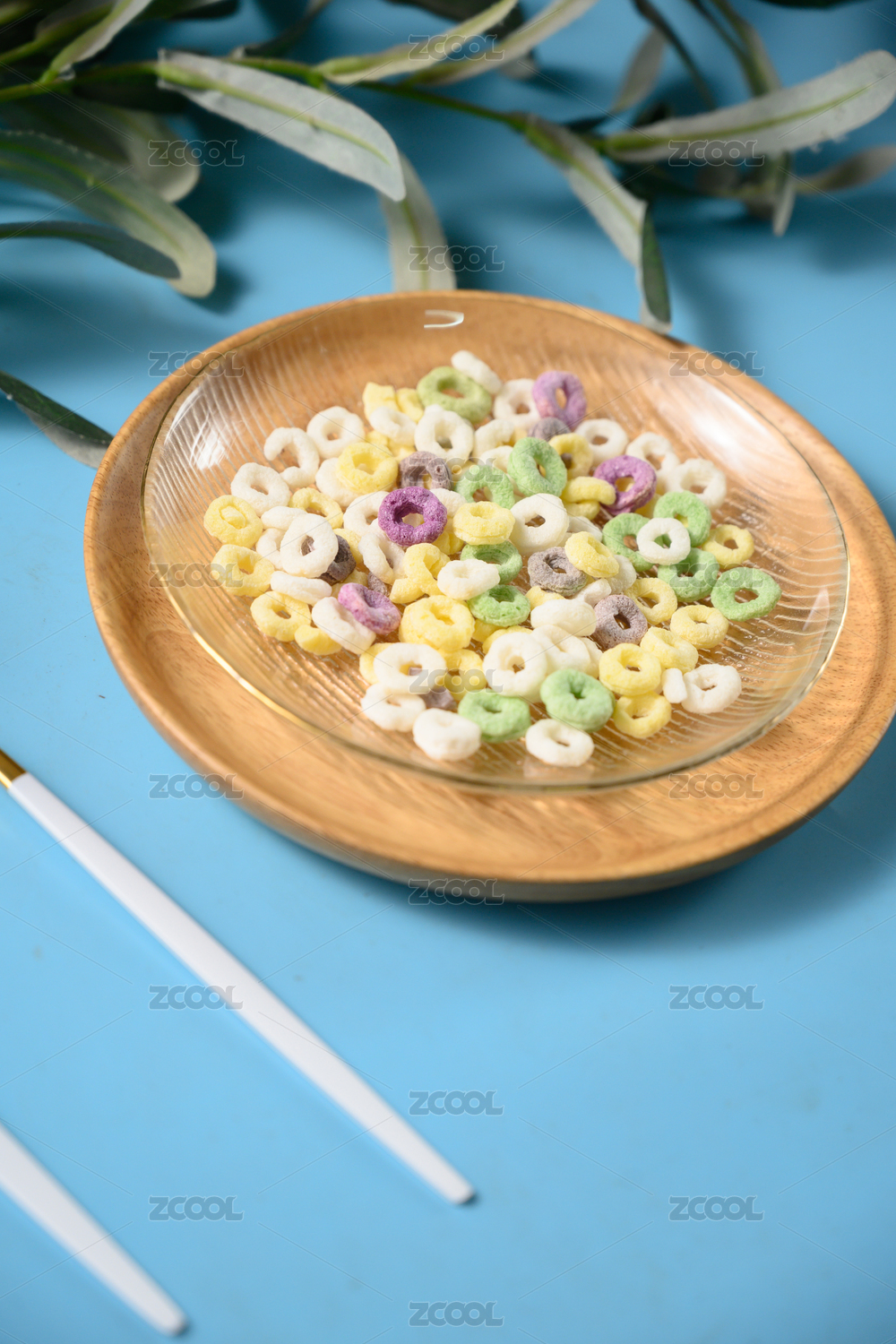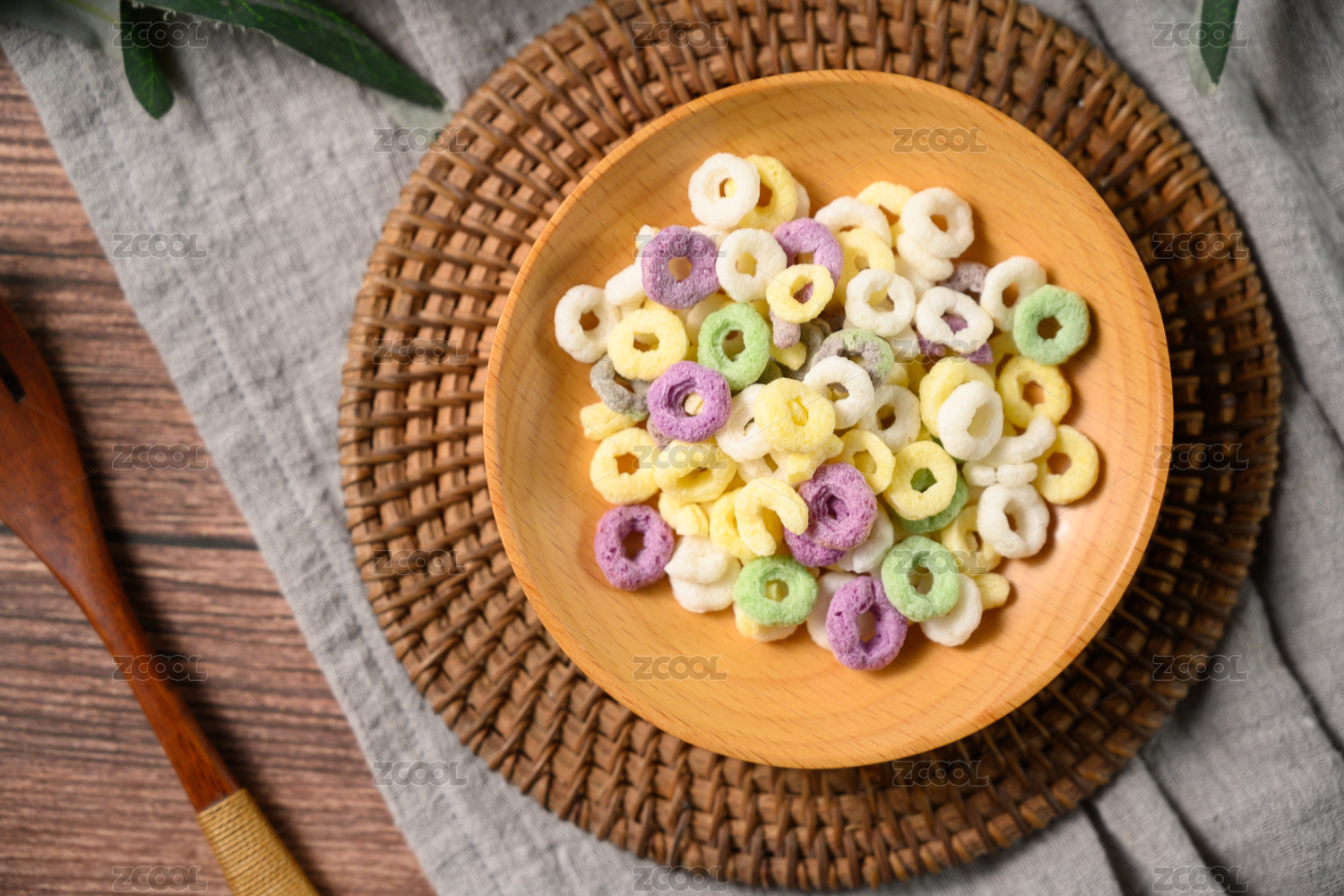 桌面上的盤(pán)子里的美味可口的谷物圈