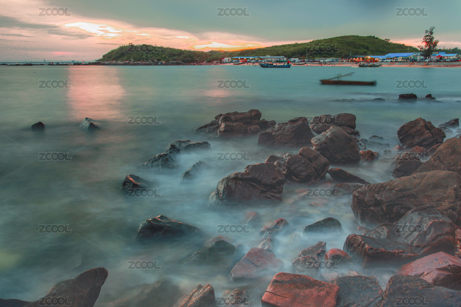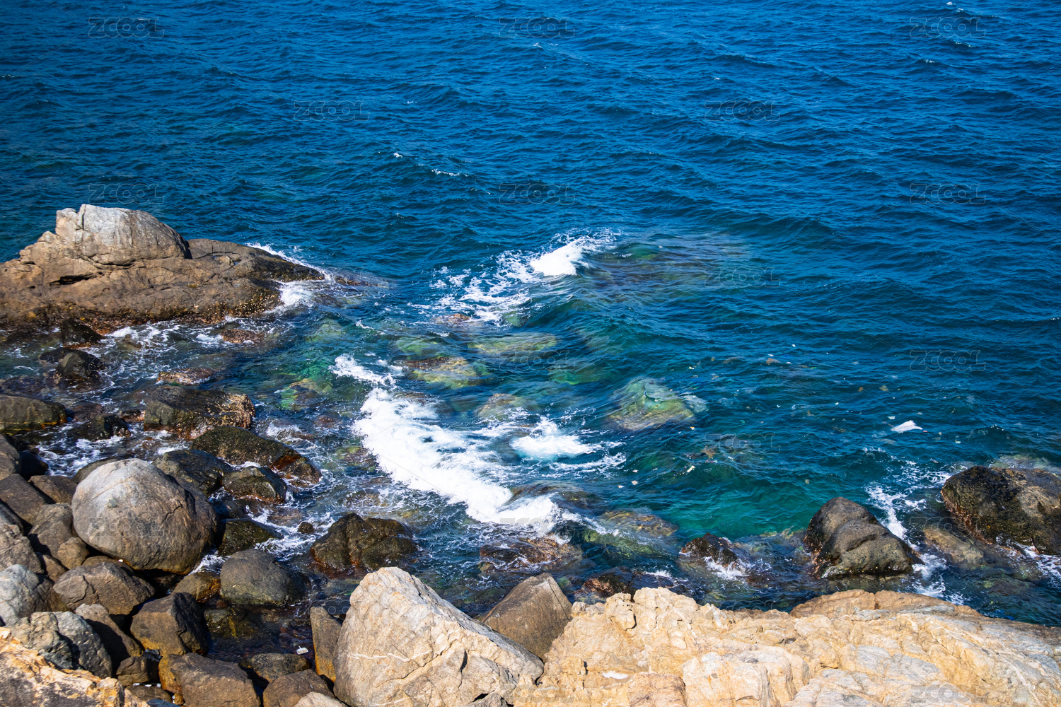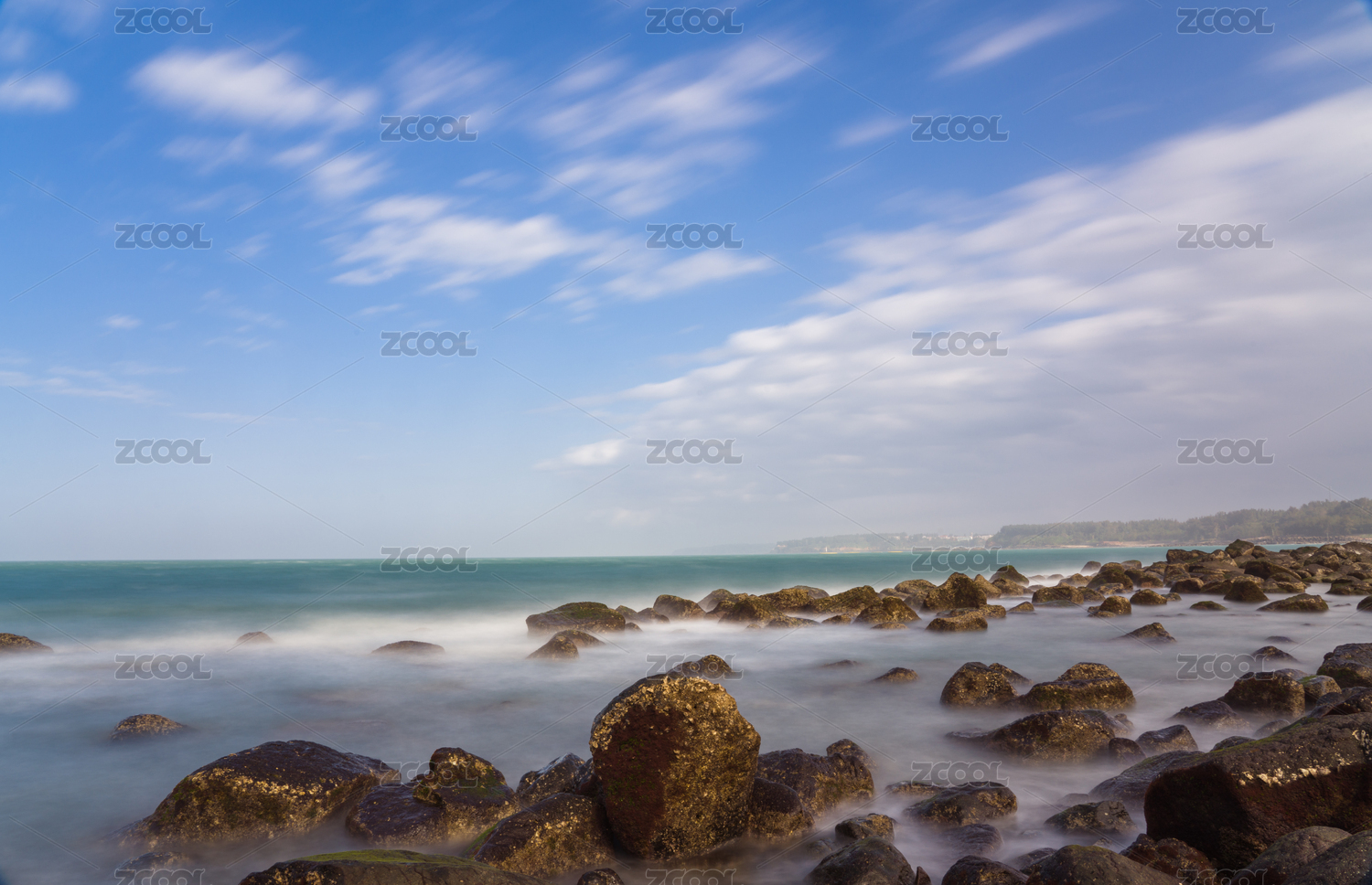 嶙峋的火山巖美麗夢幻的海南海岸風光全景