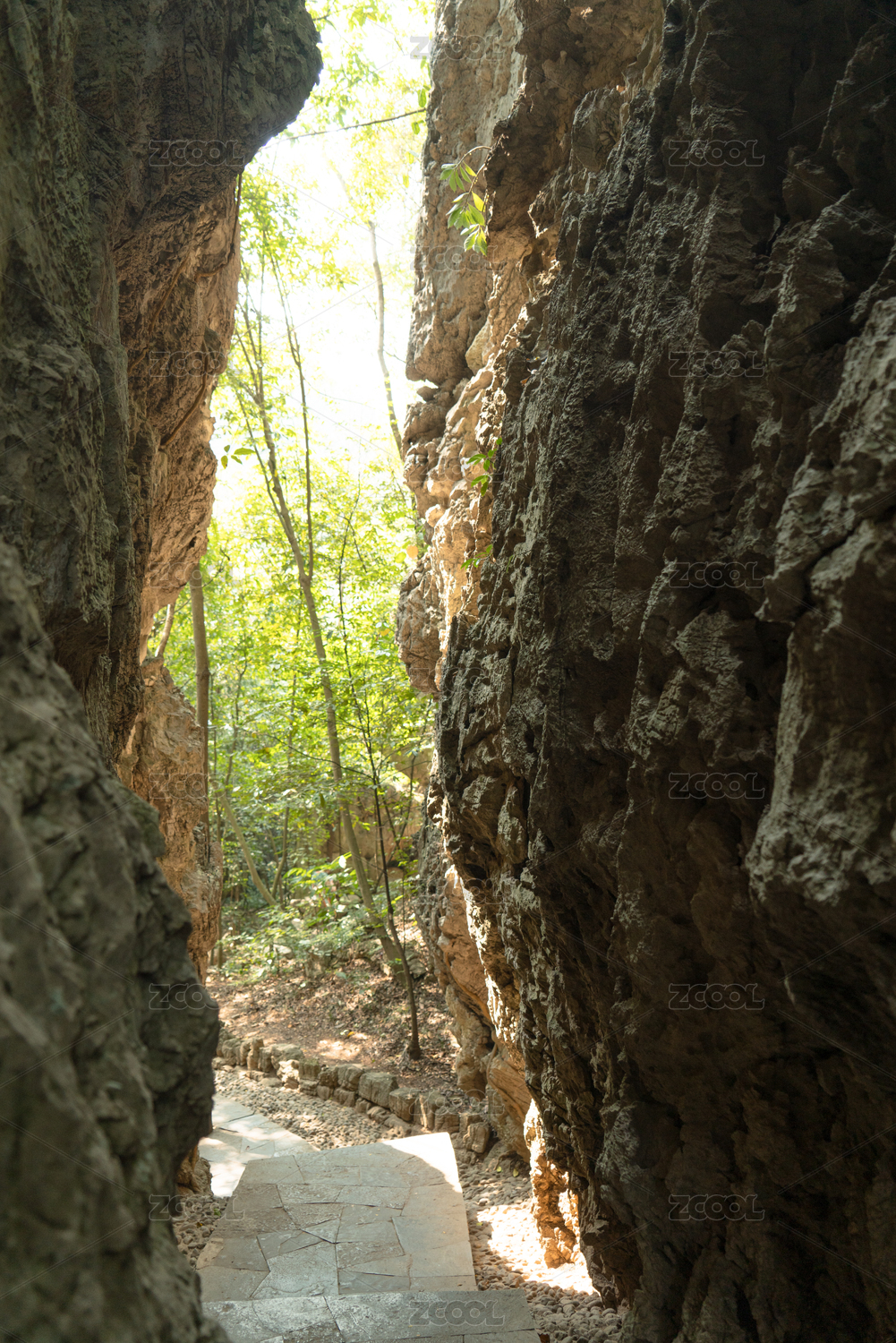 晴天野外山中嶙峋山石石壁怪石自然風光