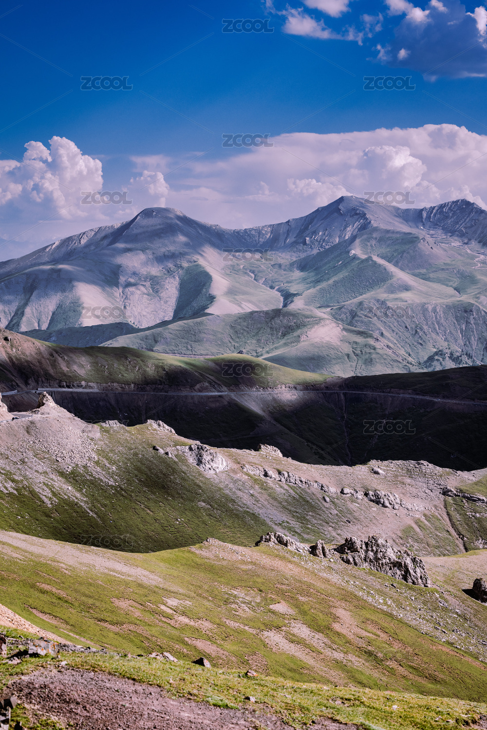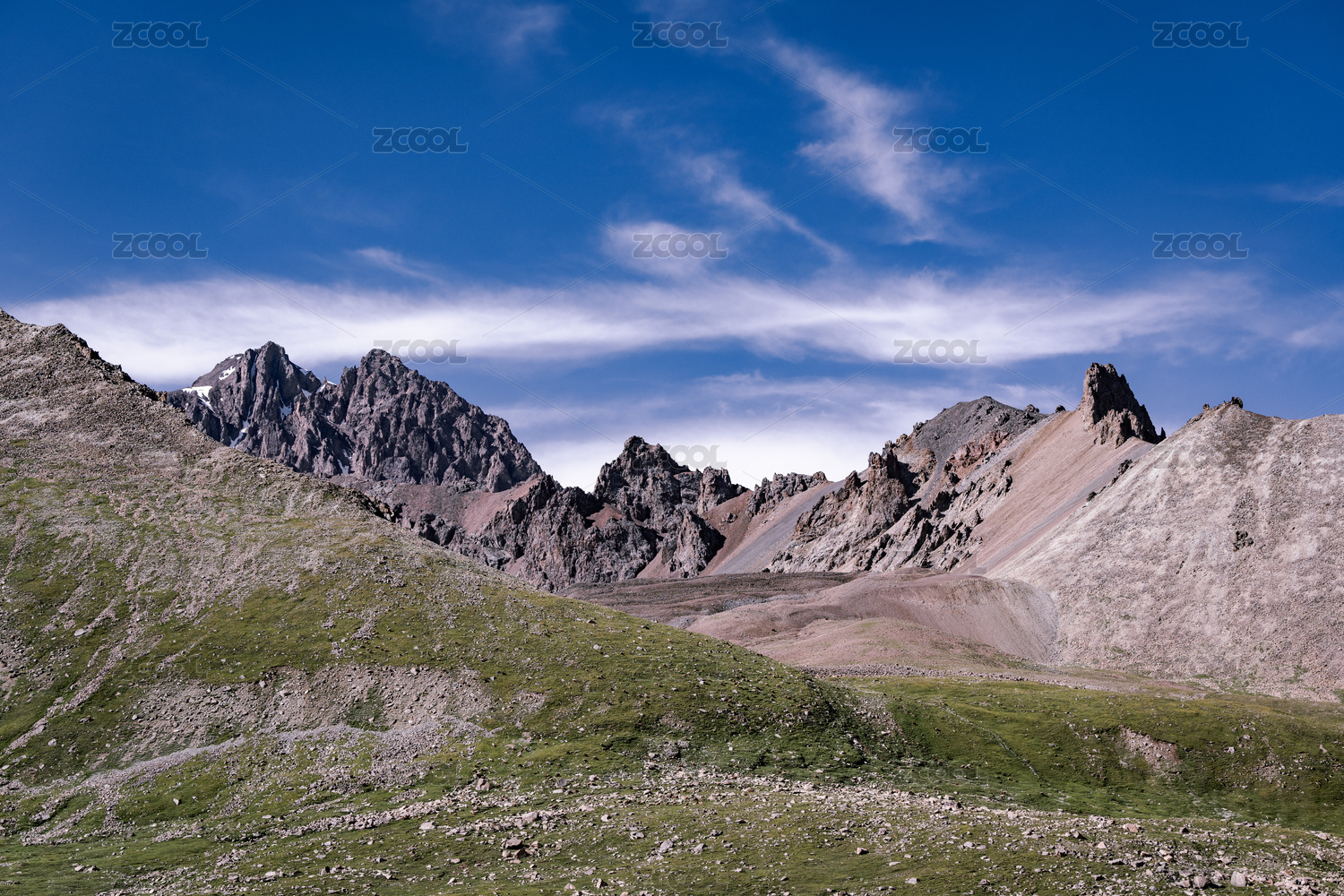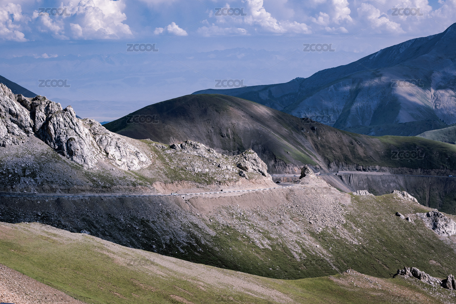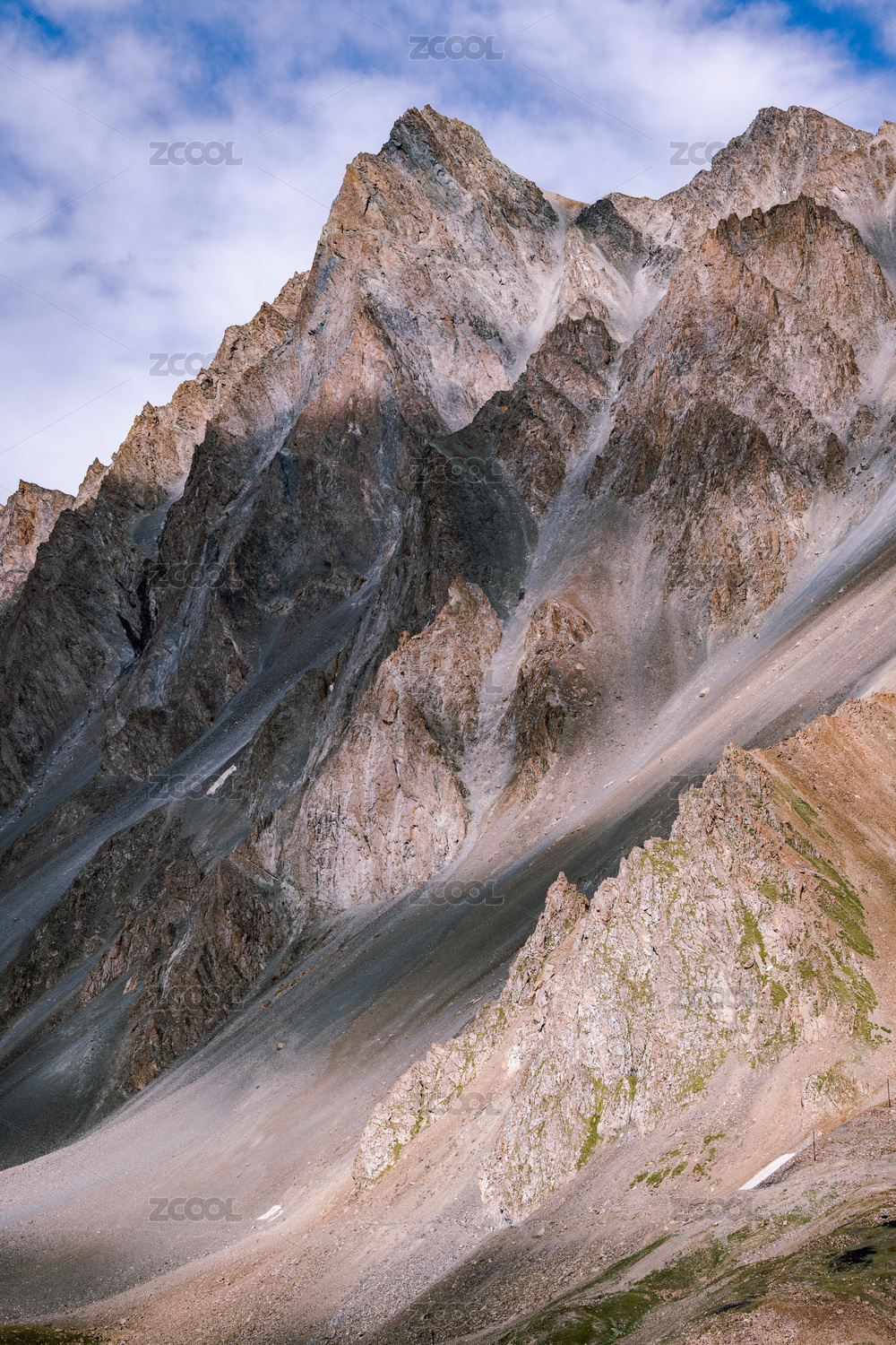 中國新疆獨庫公路上的天山,怪石嶙峋的山體