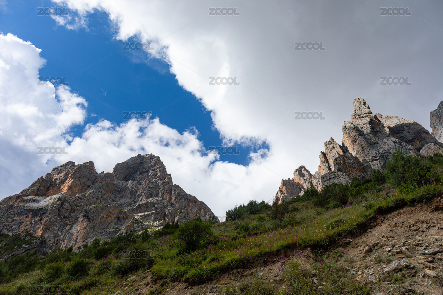 甘南洛克之路藍天白云怪石嶙峋石頭山峰