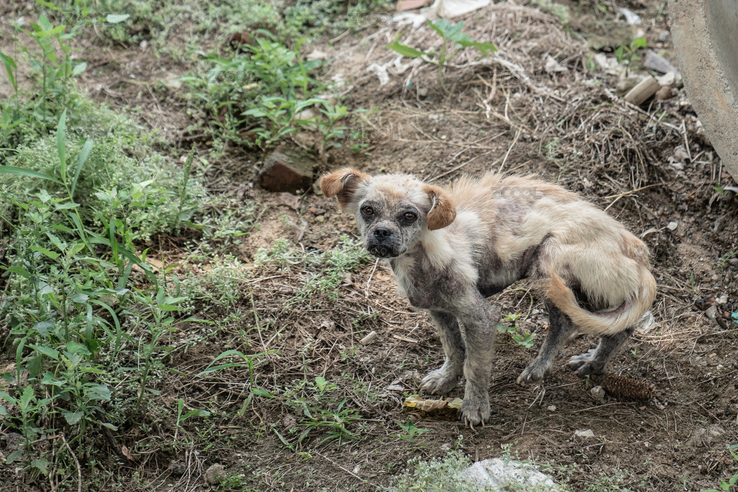 一只瘦骨嶙峋的野狗、可憐的流浪狗