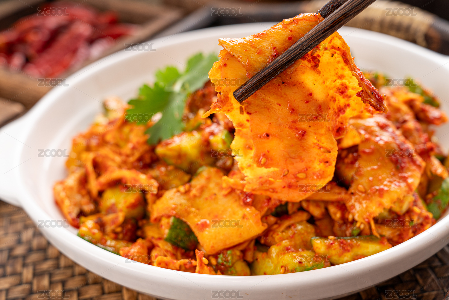 席子上盤中辣拌牛板筋