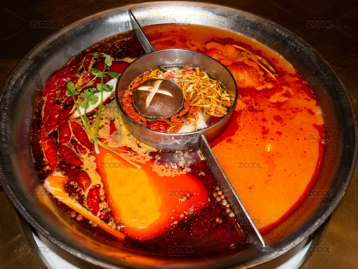 三種湯底的四川火鍋鍋底