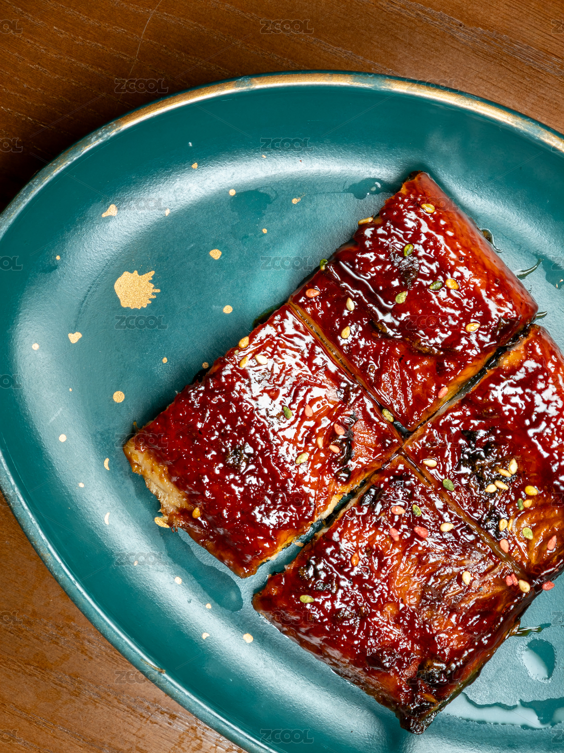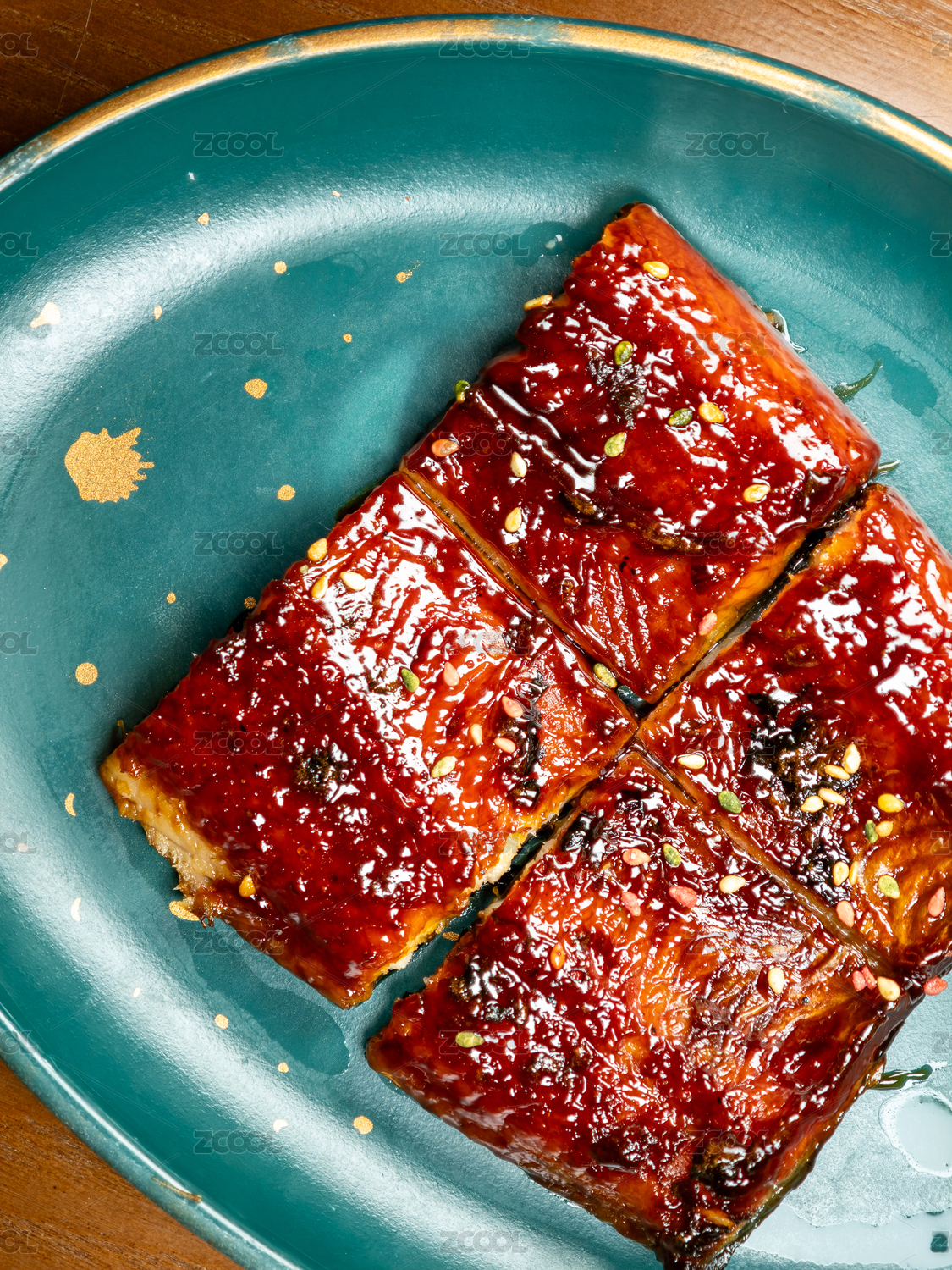 撒上芝麻的日式醬汁蒲燒烤鰻魚(yú)