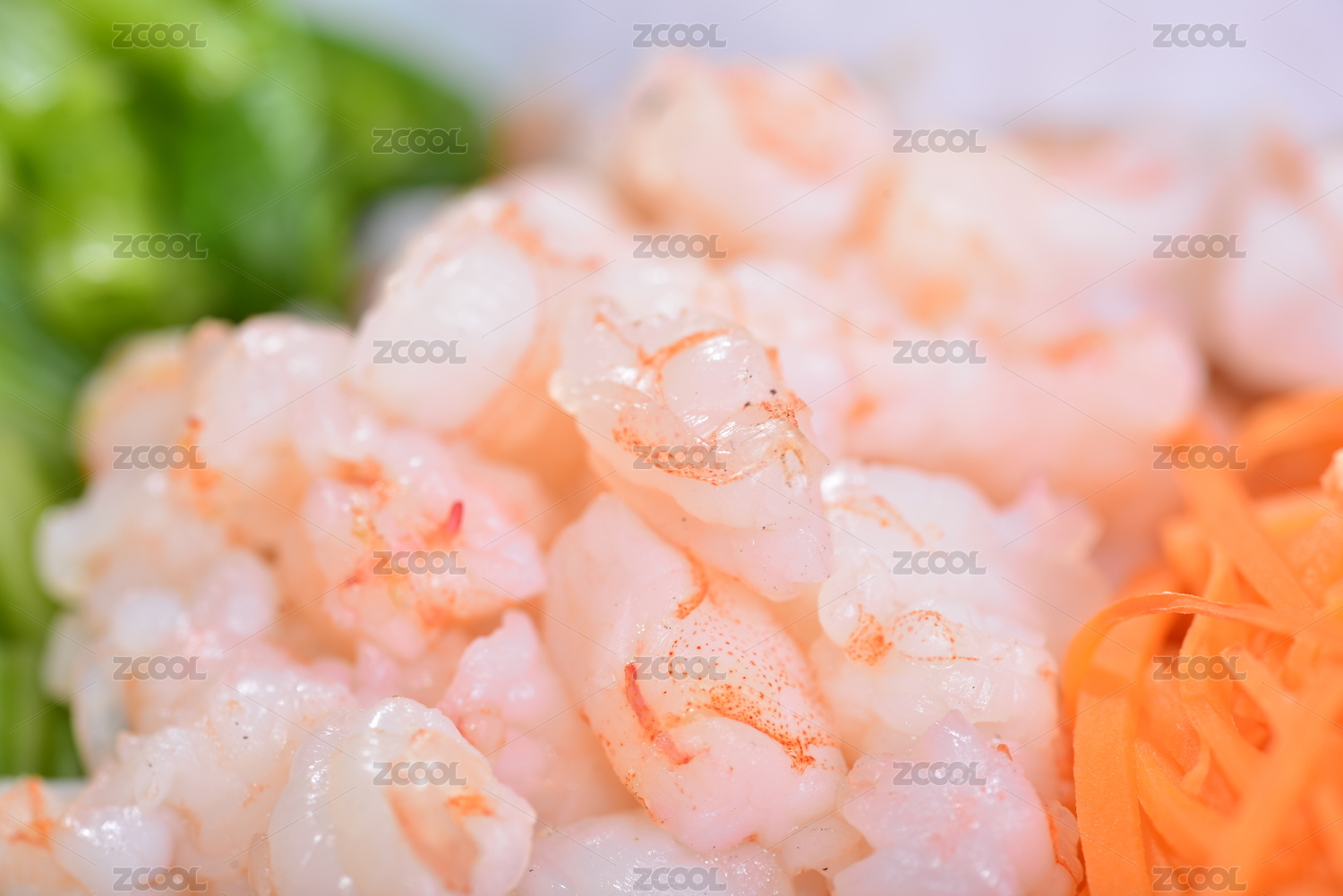 新鮮食材特寫五彩繽紛蔥花蝦肉