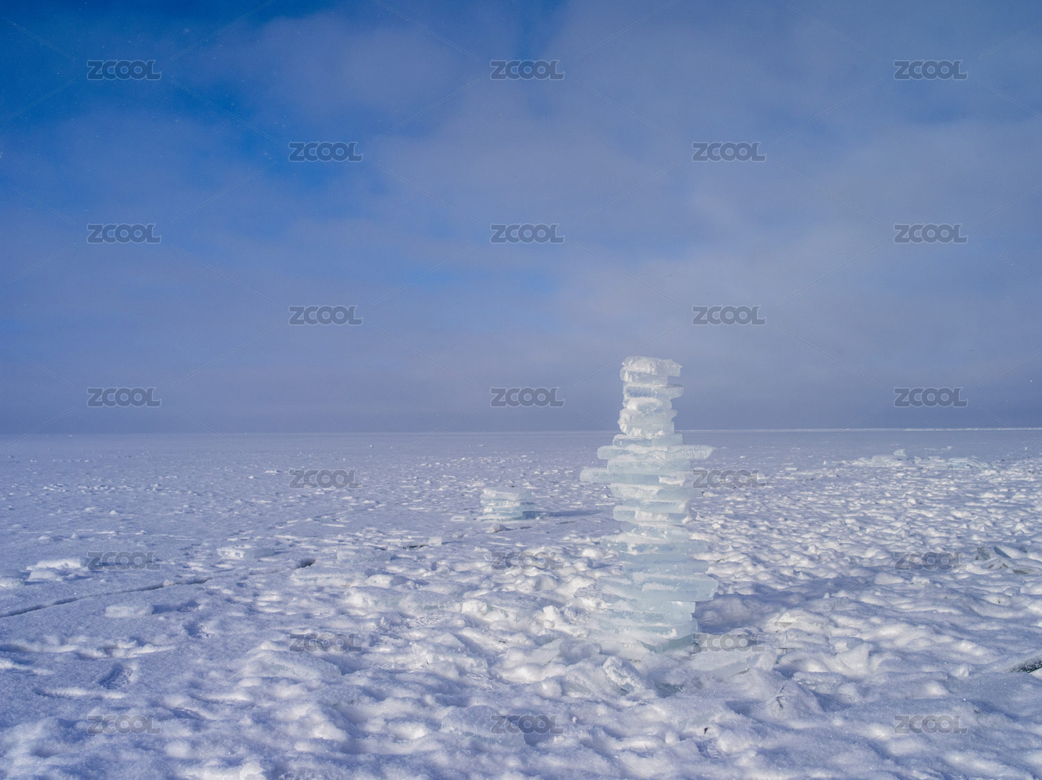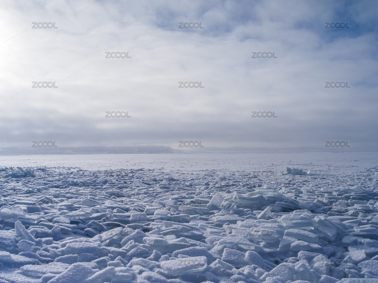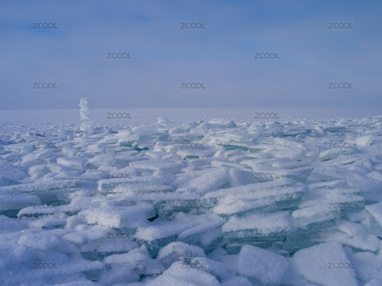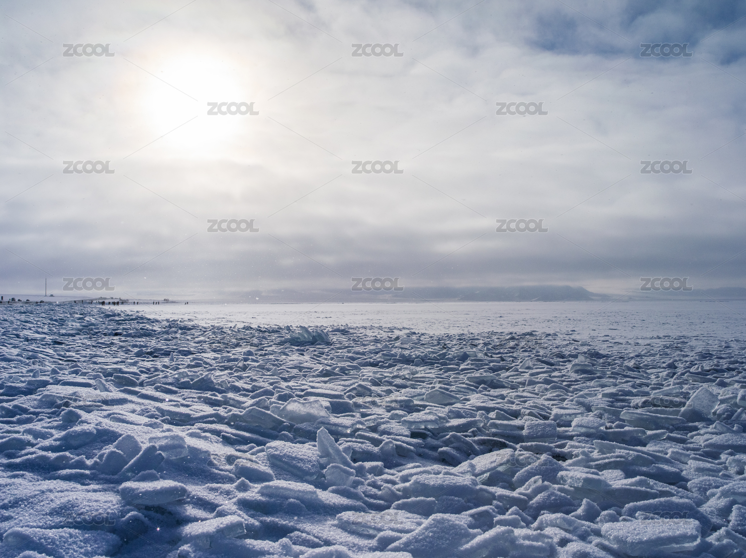 中國(guó)冬季新疆賽里木湖結(jié)冰的冰面和冰堆