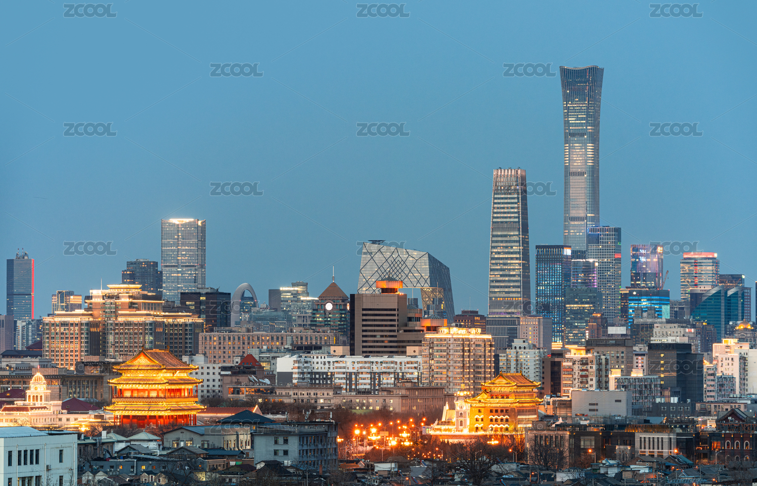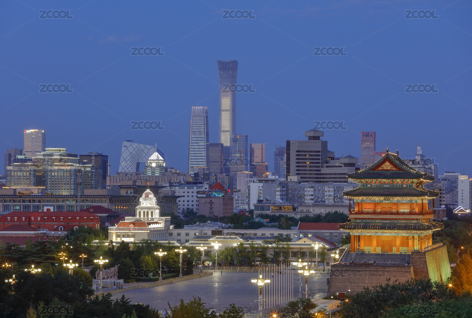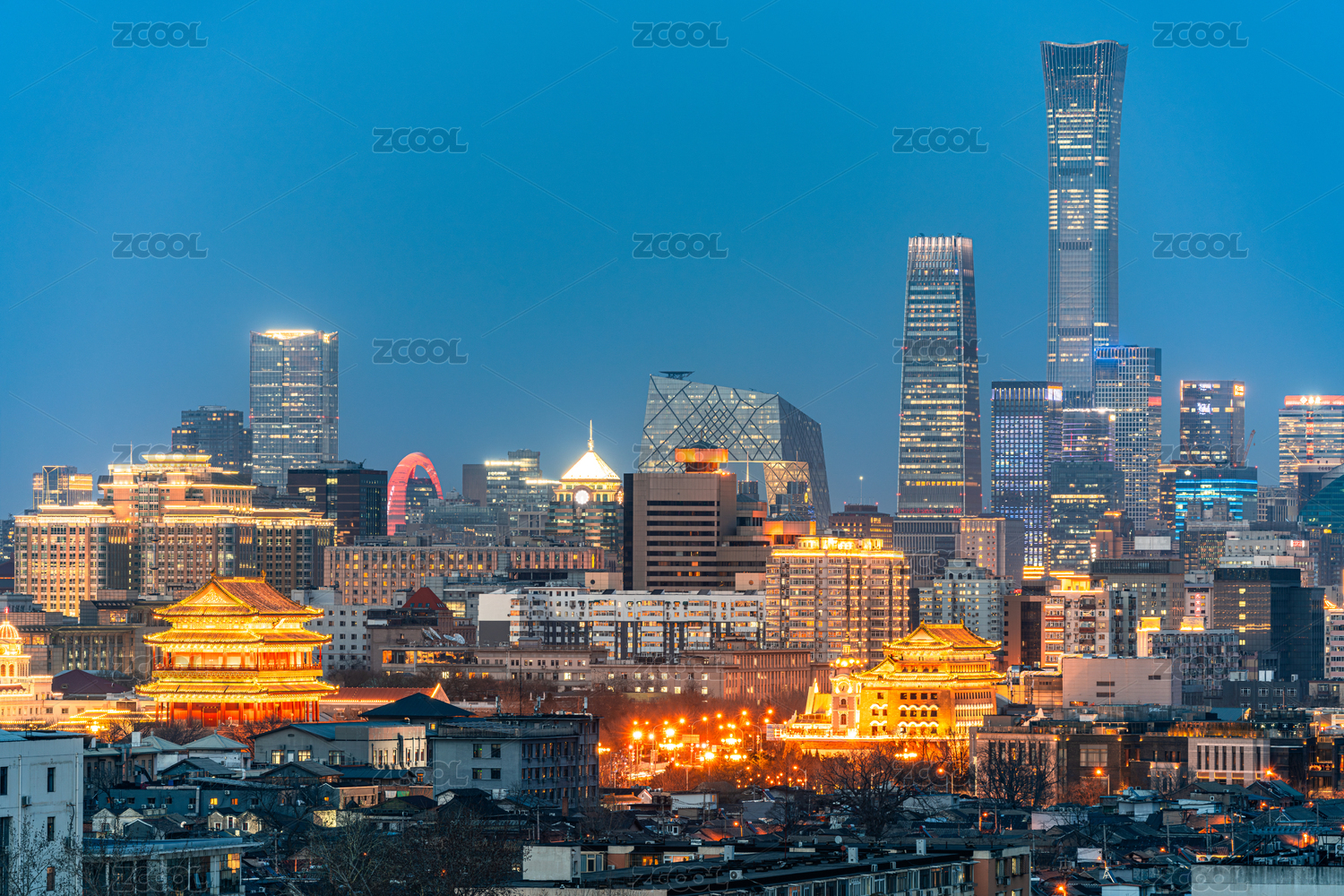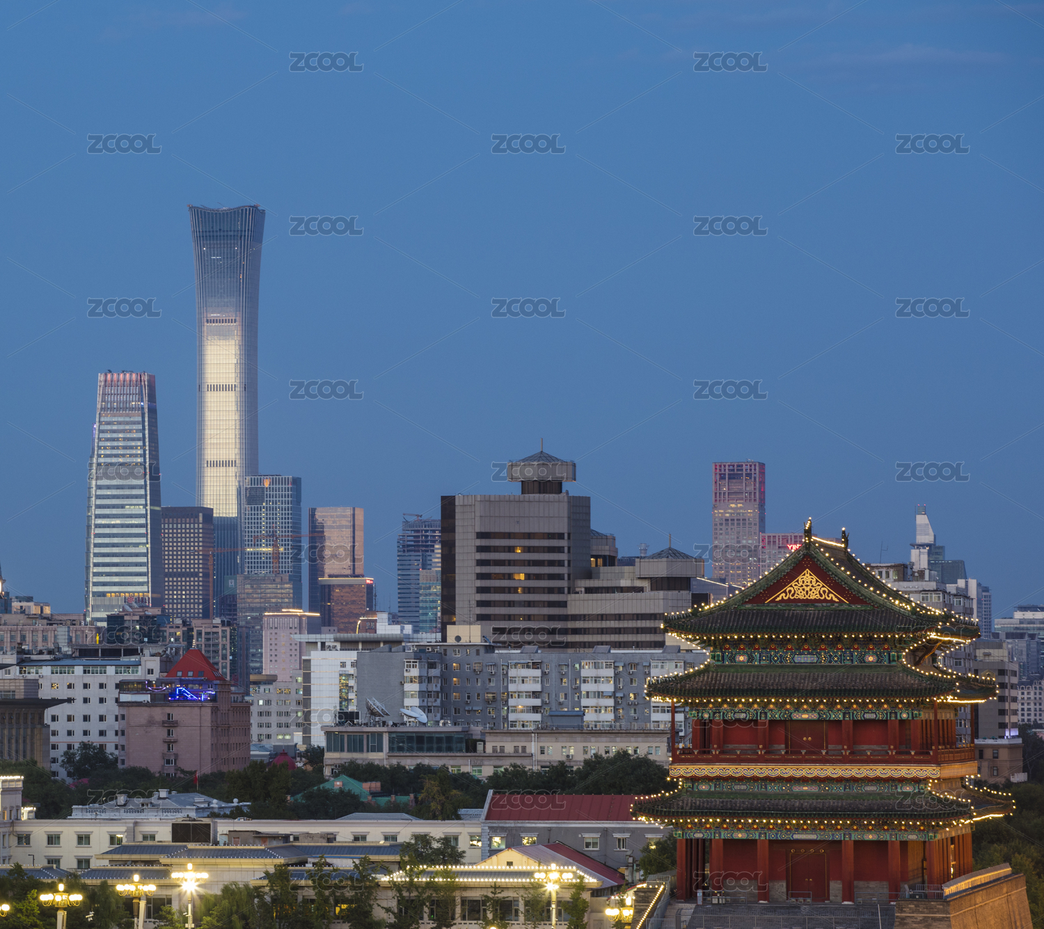 中國北京前門正陽門和國貿(mào)CBD天際線夜景