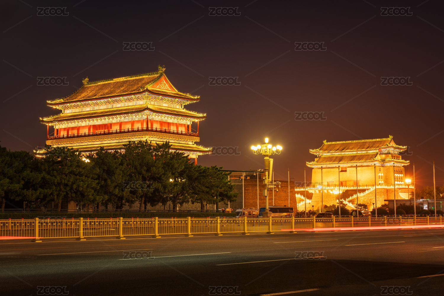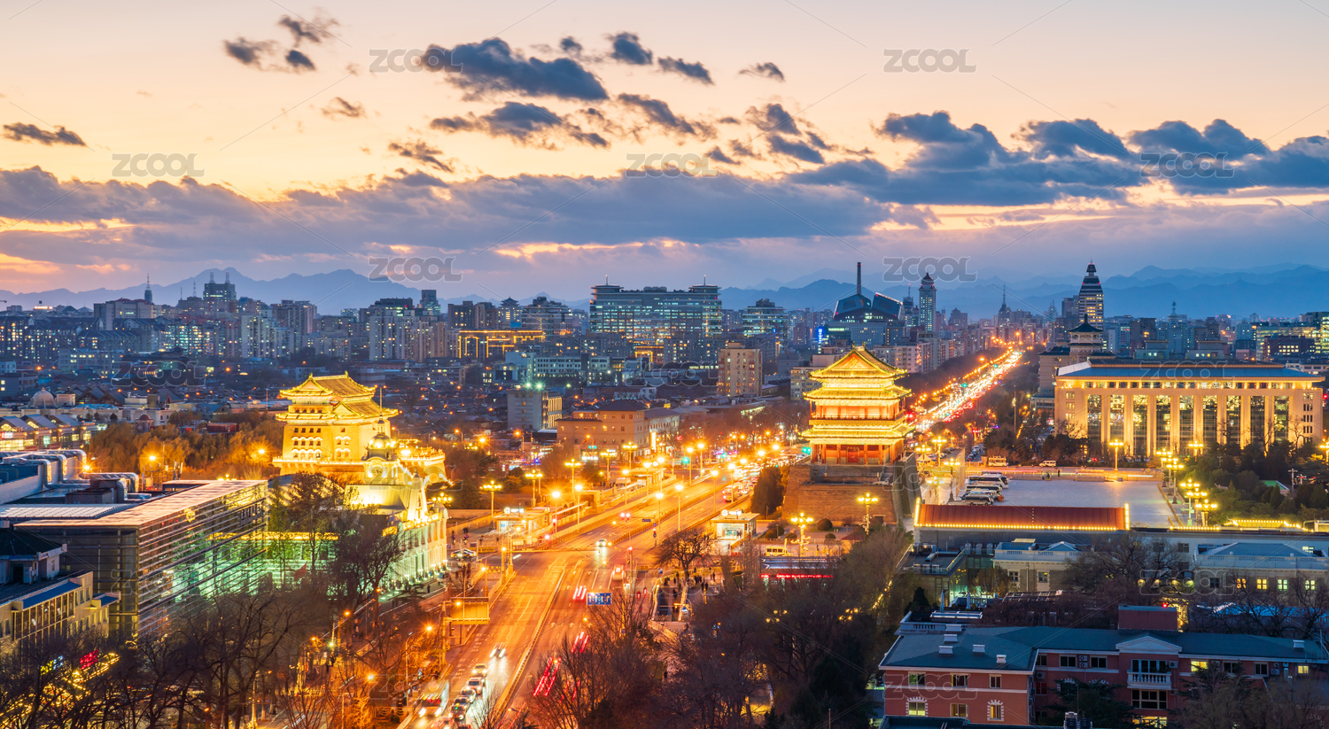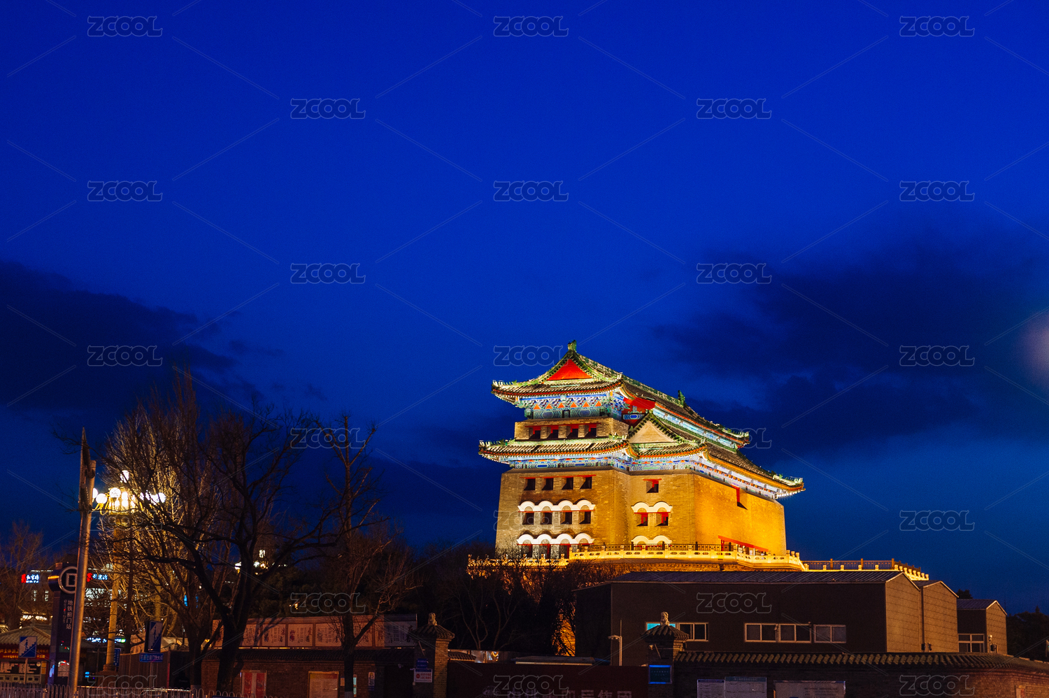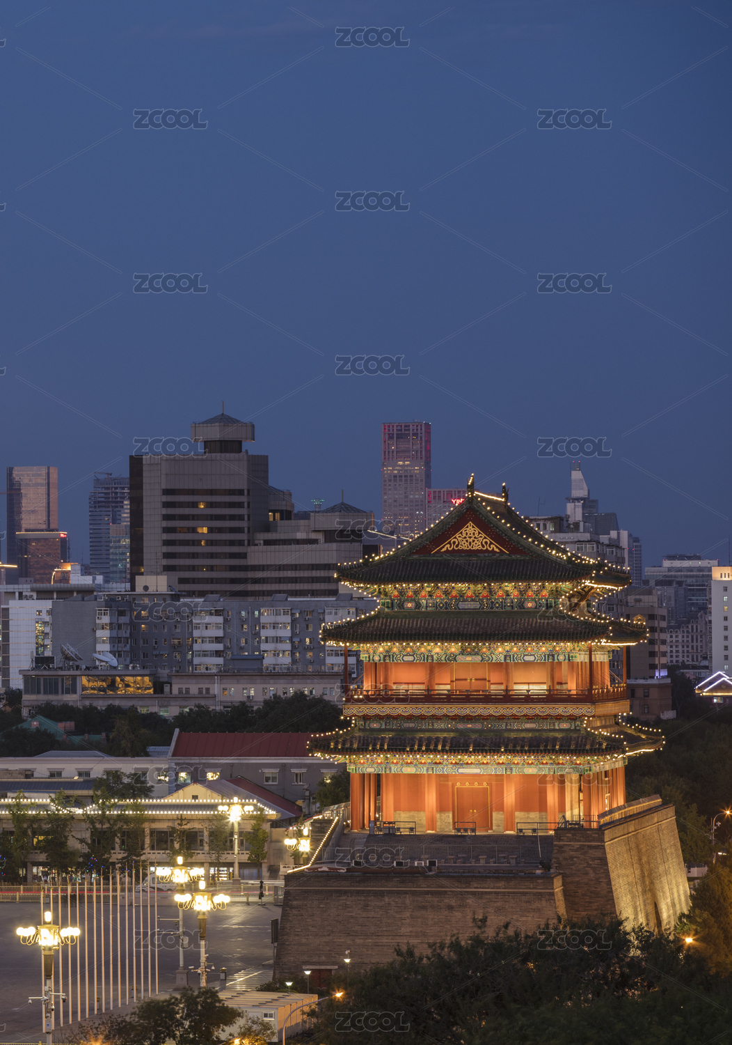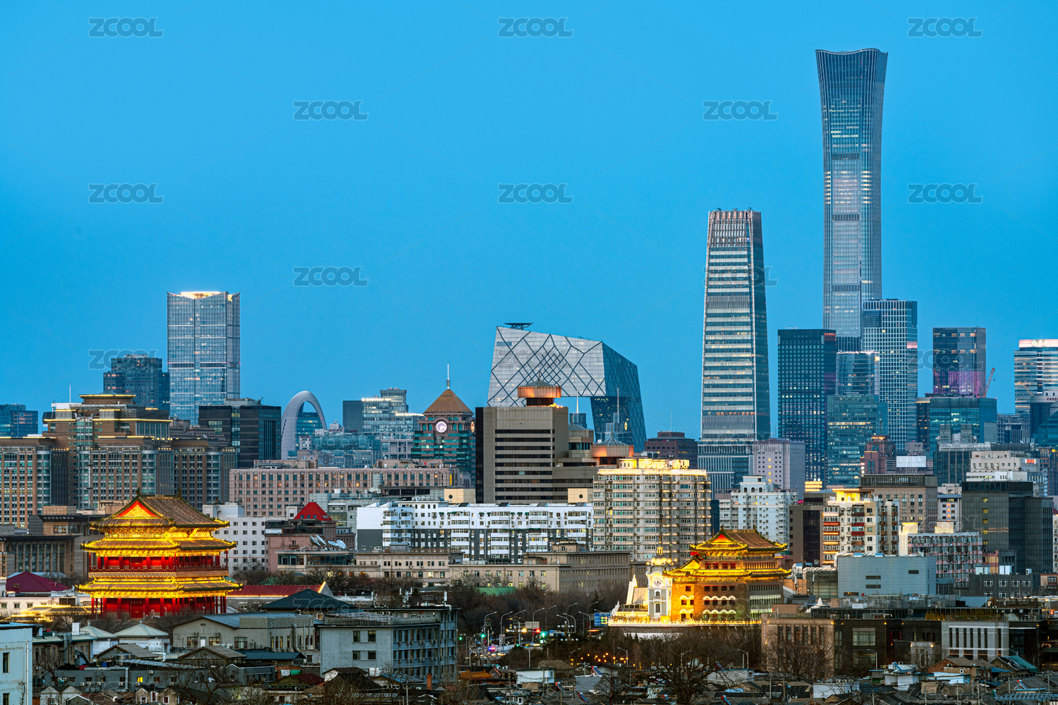 中國北京前門正陽門和國貿(mào)CBD天際線夜景