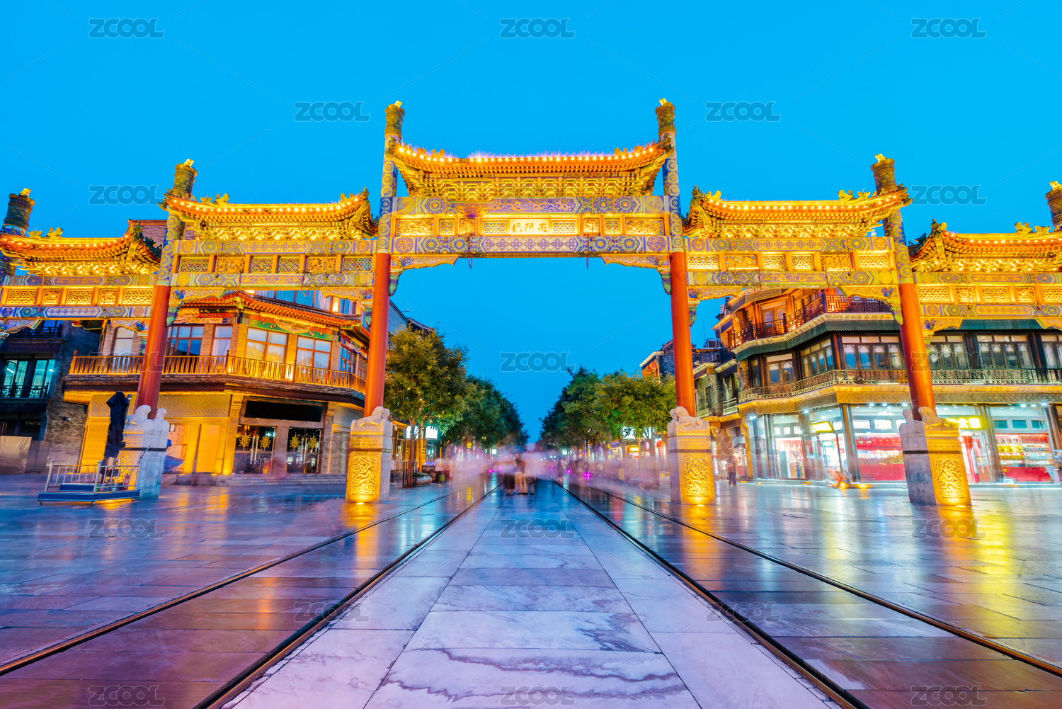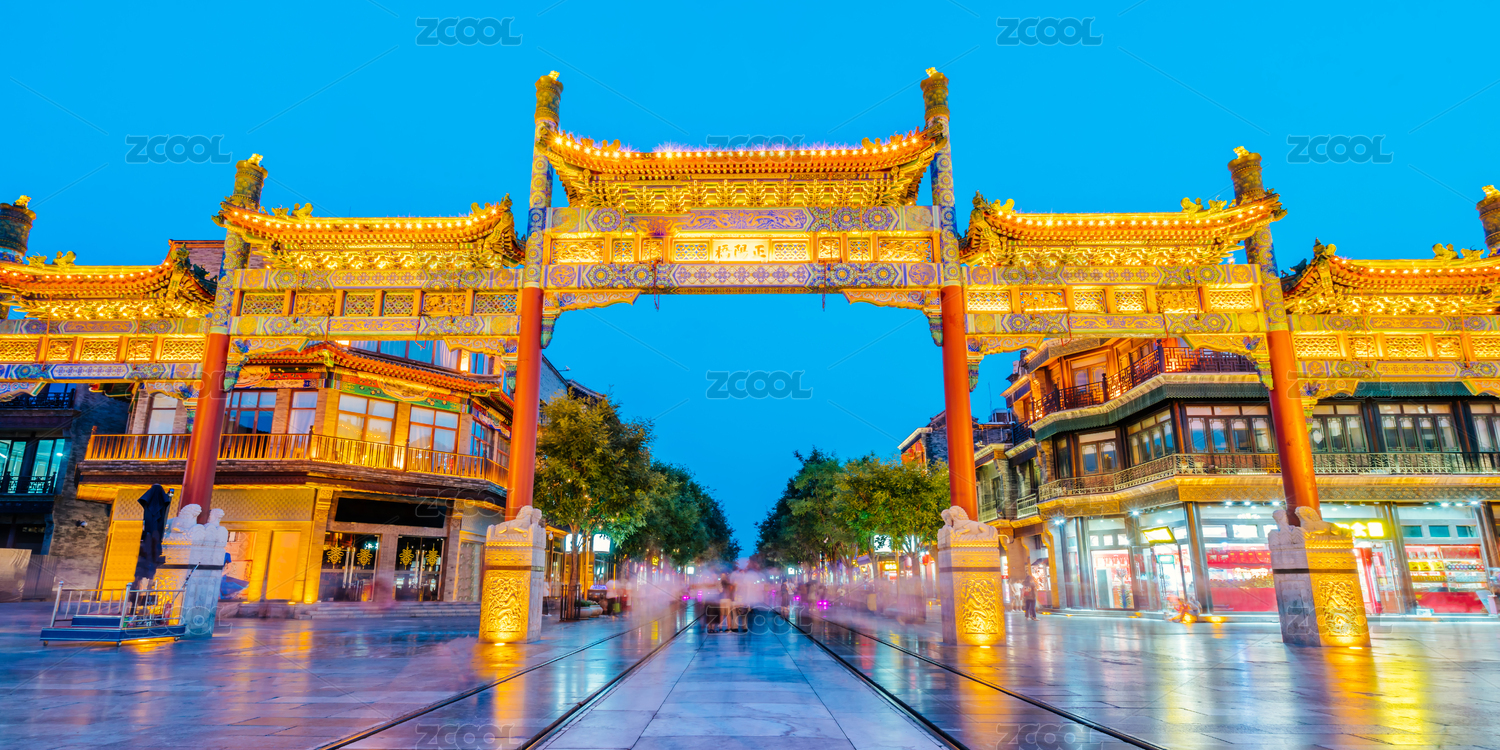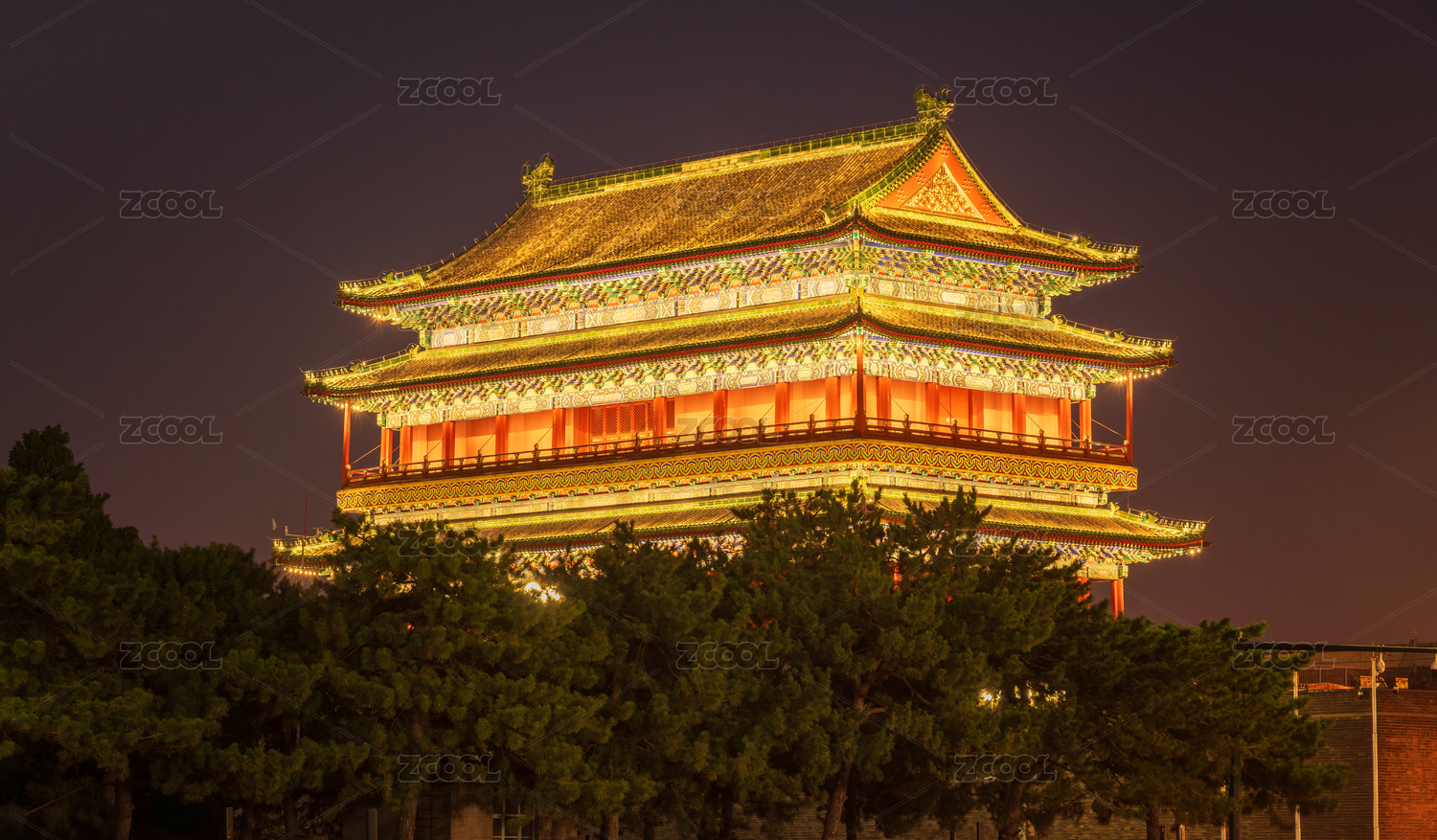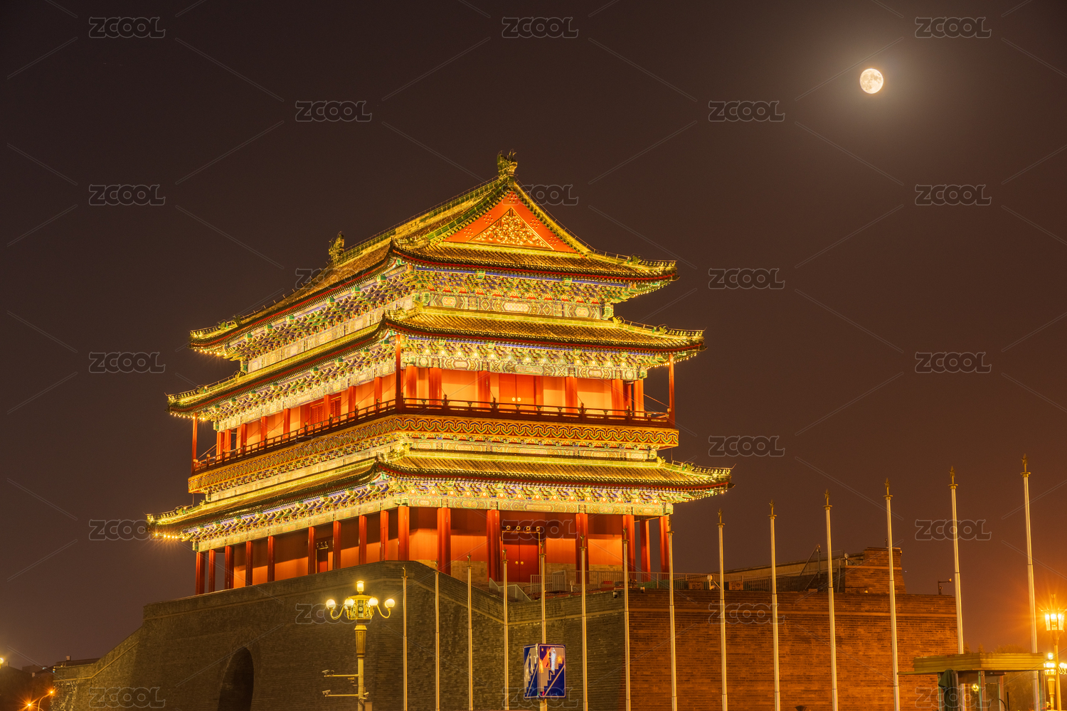 中國北京前門正陽門和國貿(mào)CBD天際線夜景