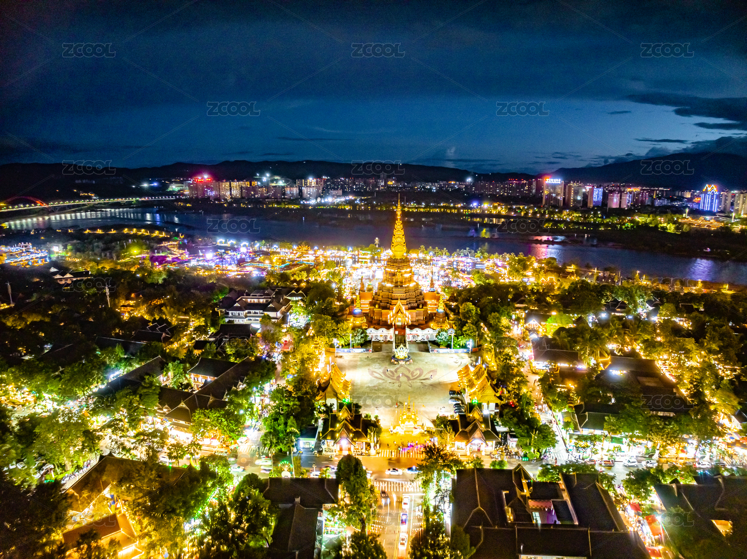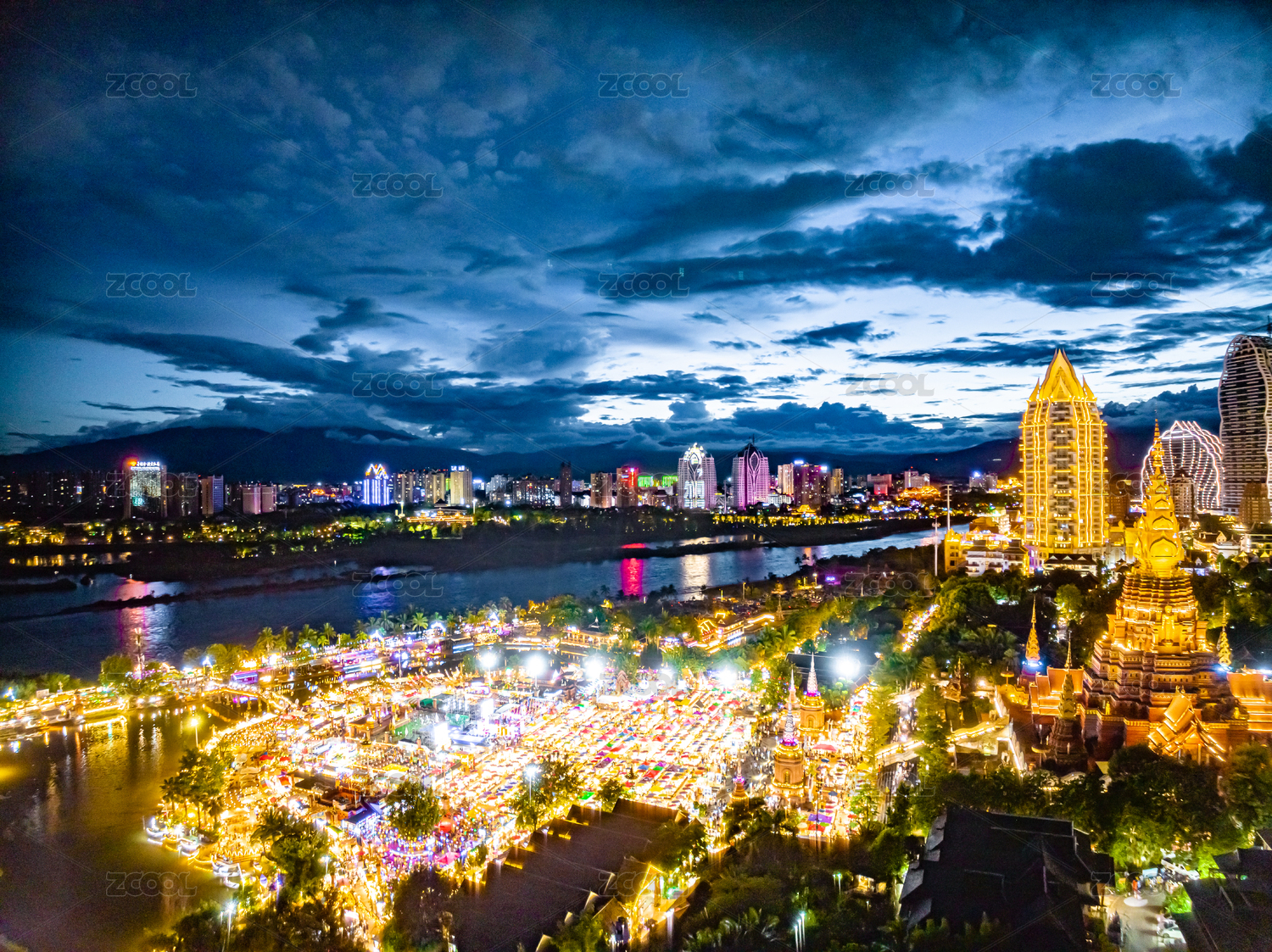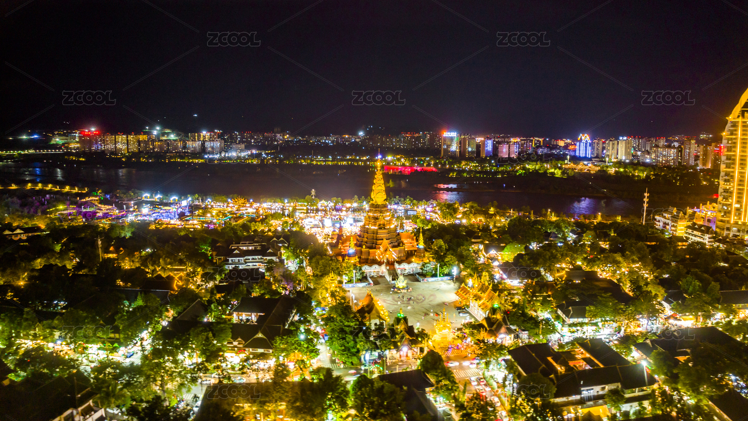 西雙版納景洪市告莊星光夜市和佛塔城市風(fēng)光