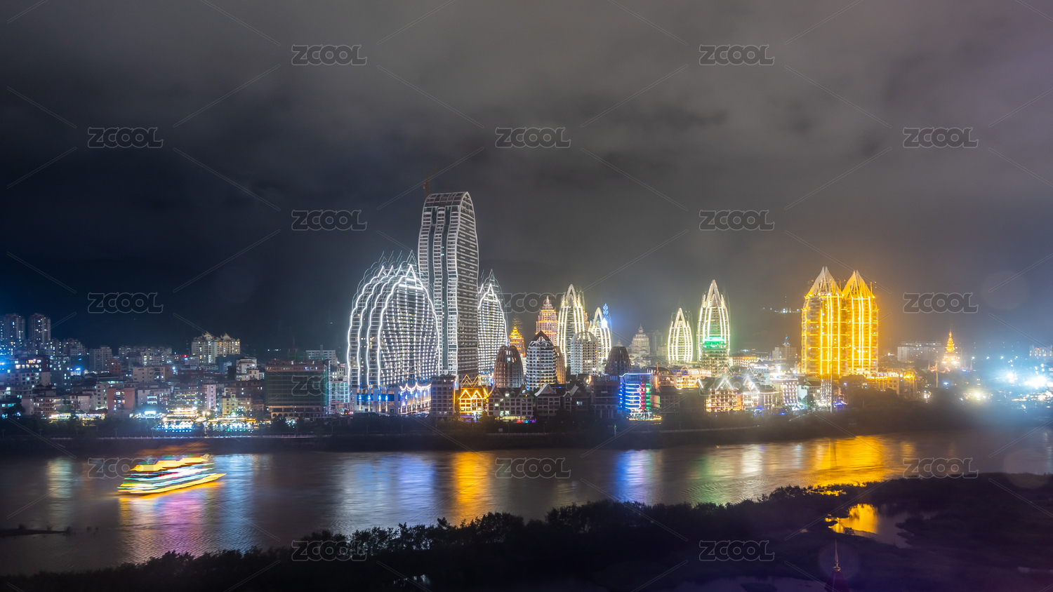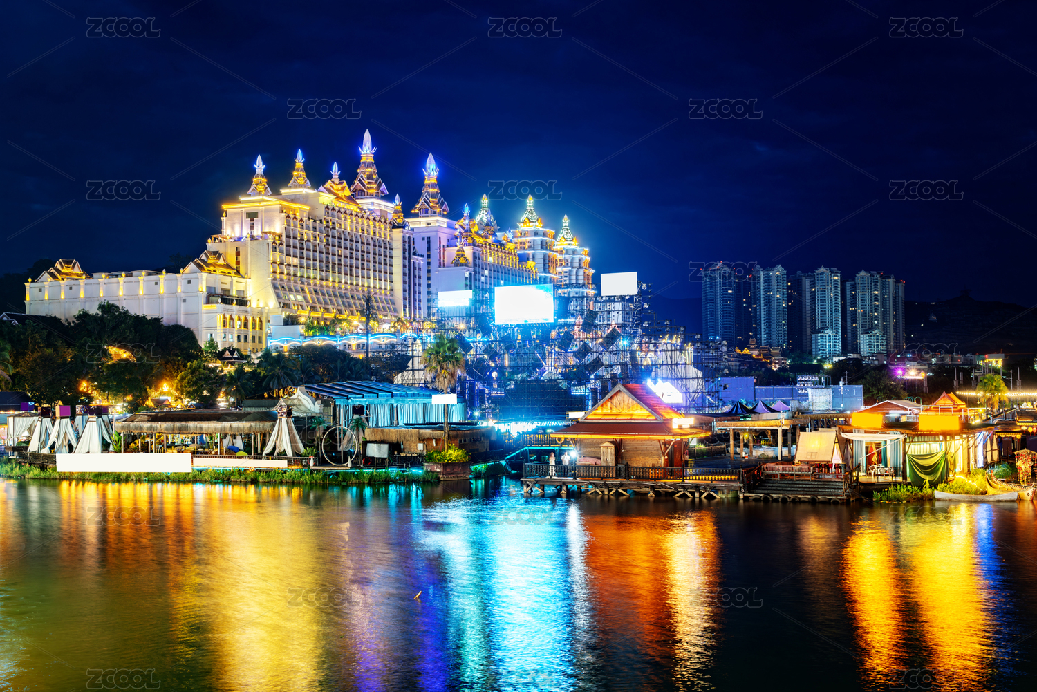 西雙版納景洪市告莊和湄公河星光夜市夜景