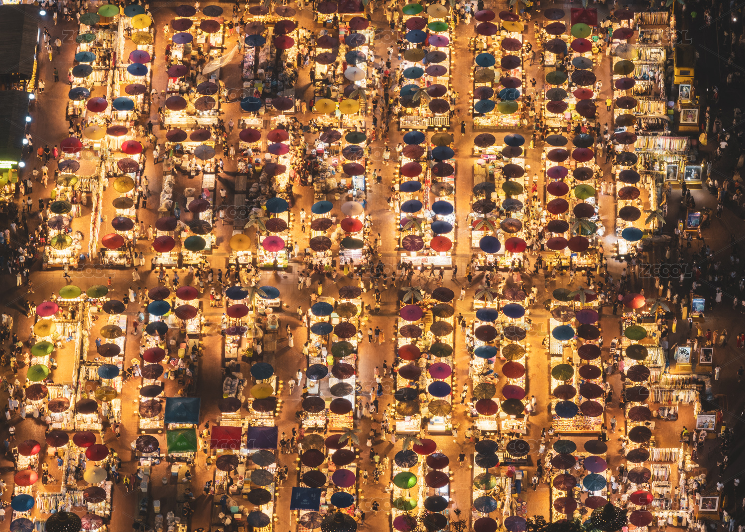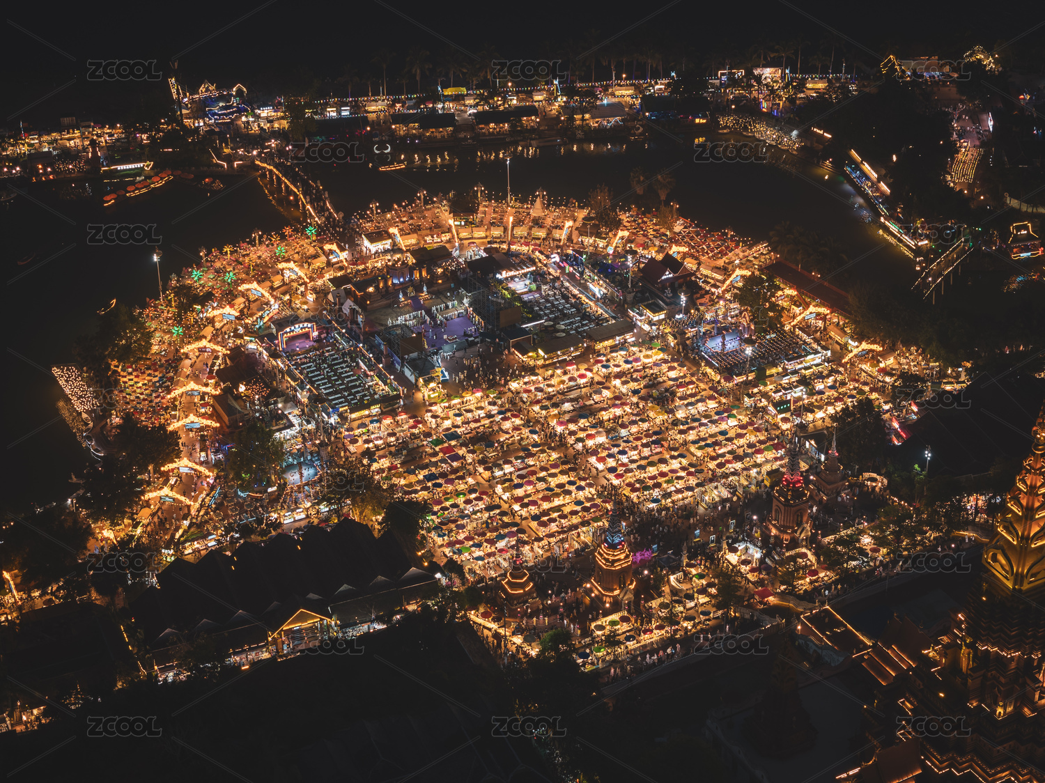 云南西雙版納景洪市告莊星光夜市航拍風(fēng)光