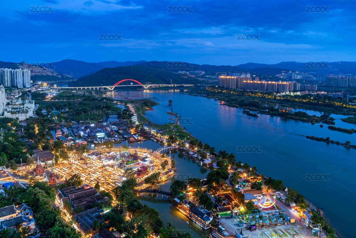 云南西雙版納景洪市告莊星光夜市湄公河水上