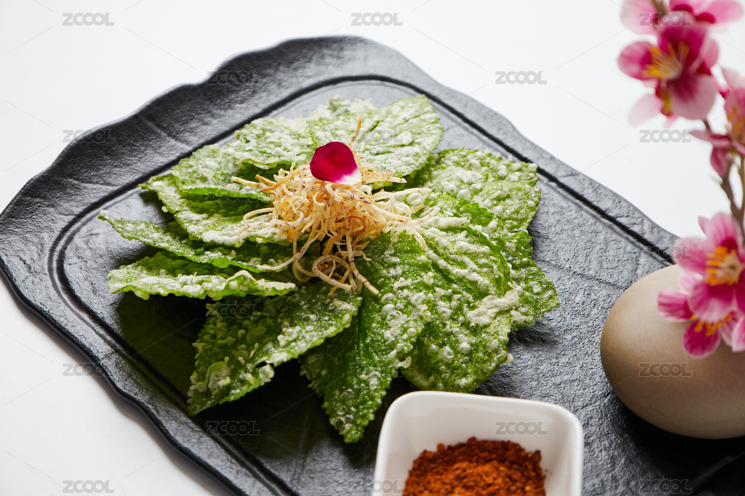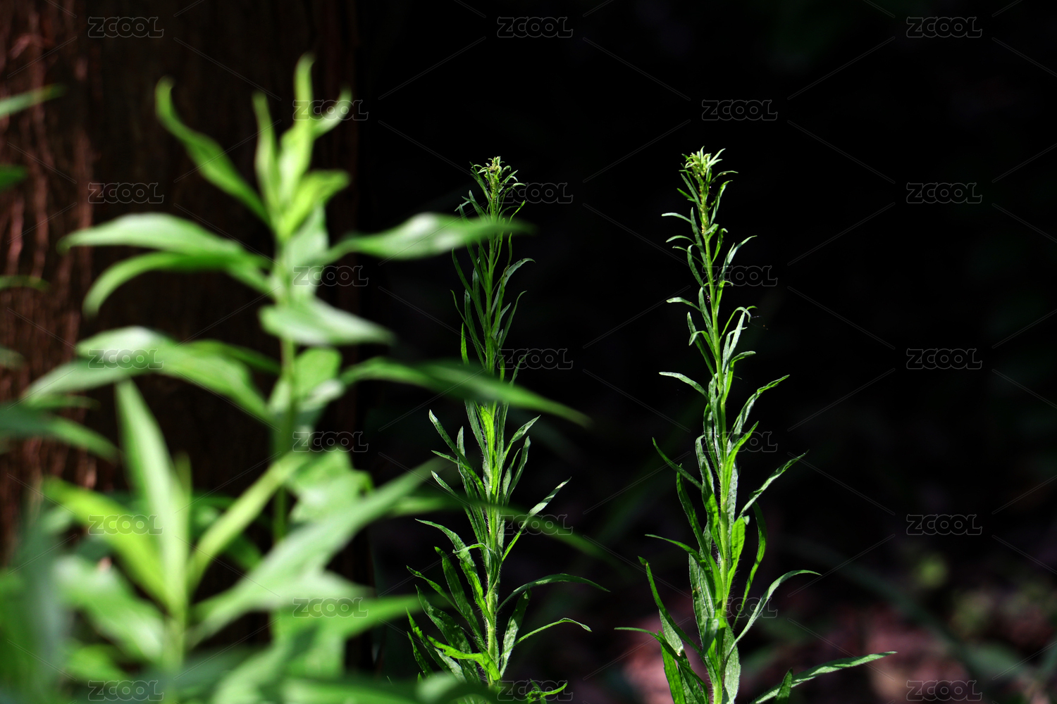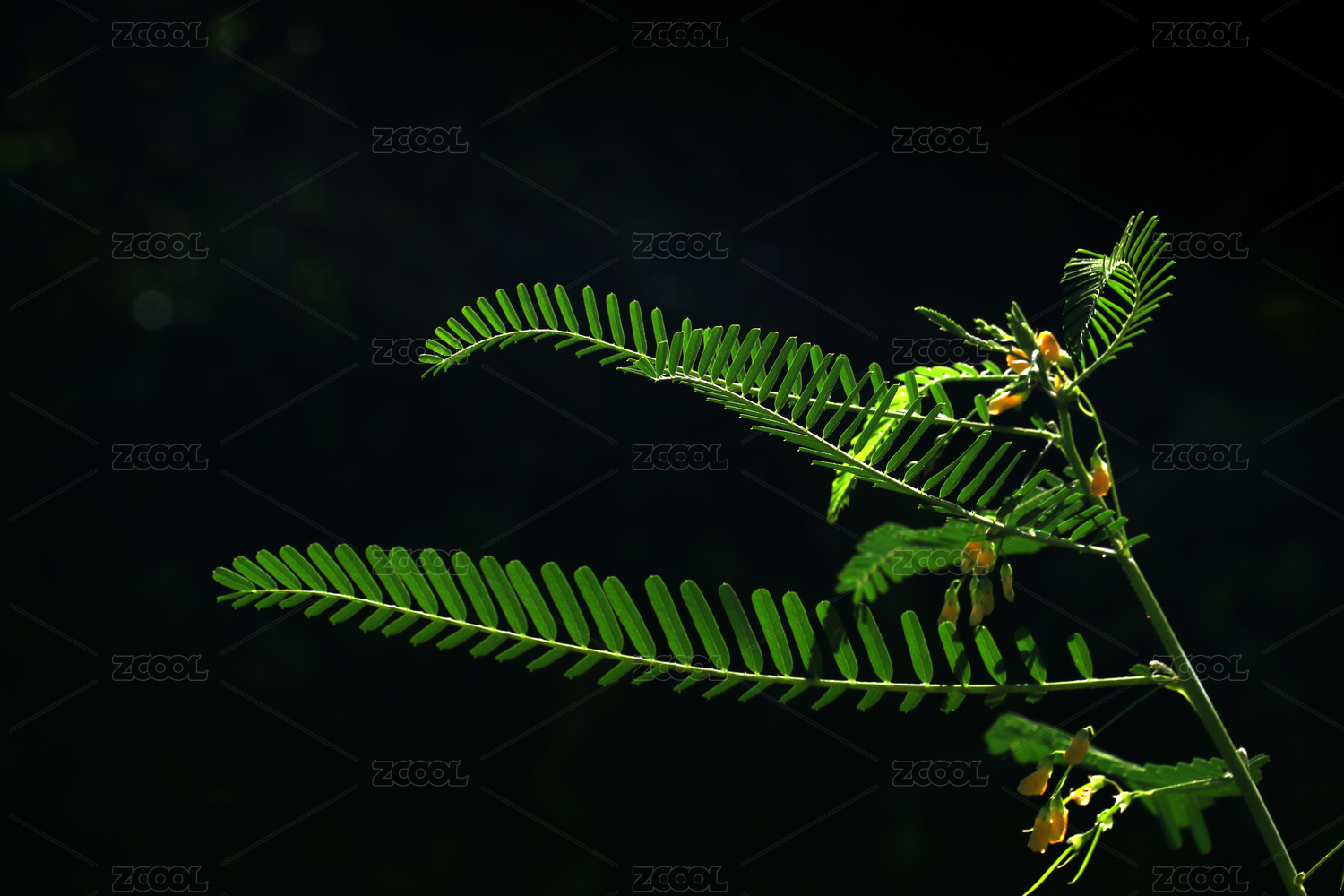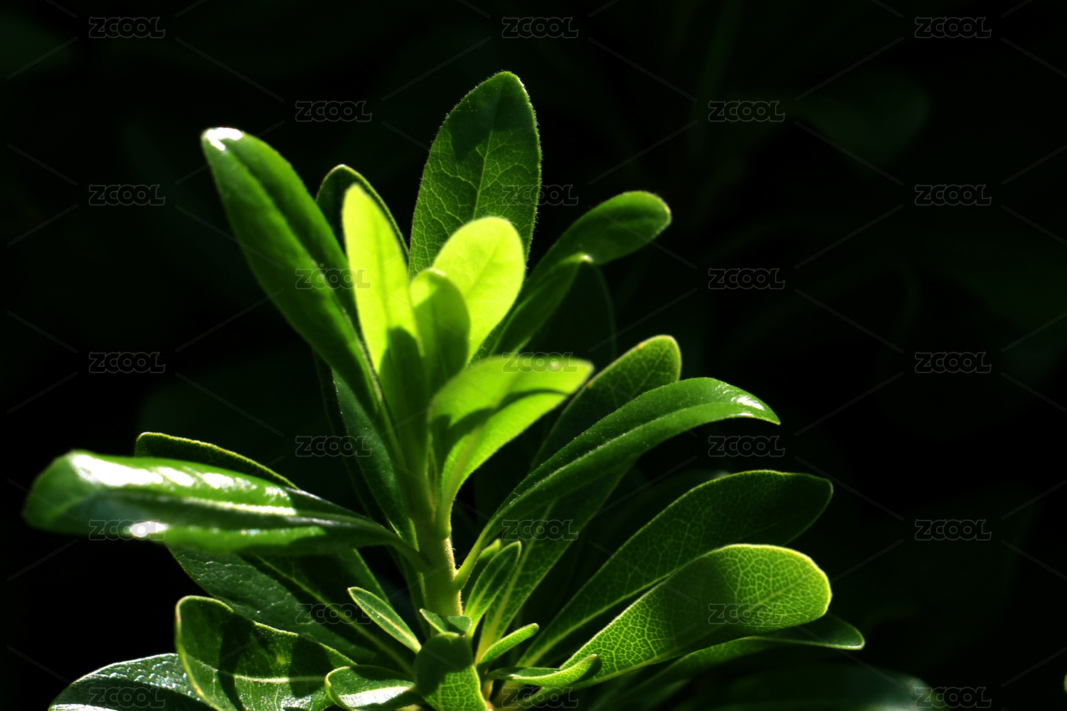 低調(diào)背景前側(cè)逆光映照的姿態(tài)各異的翠葉