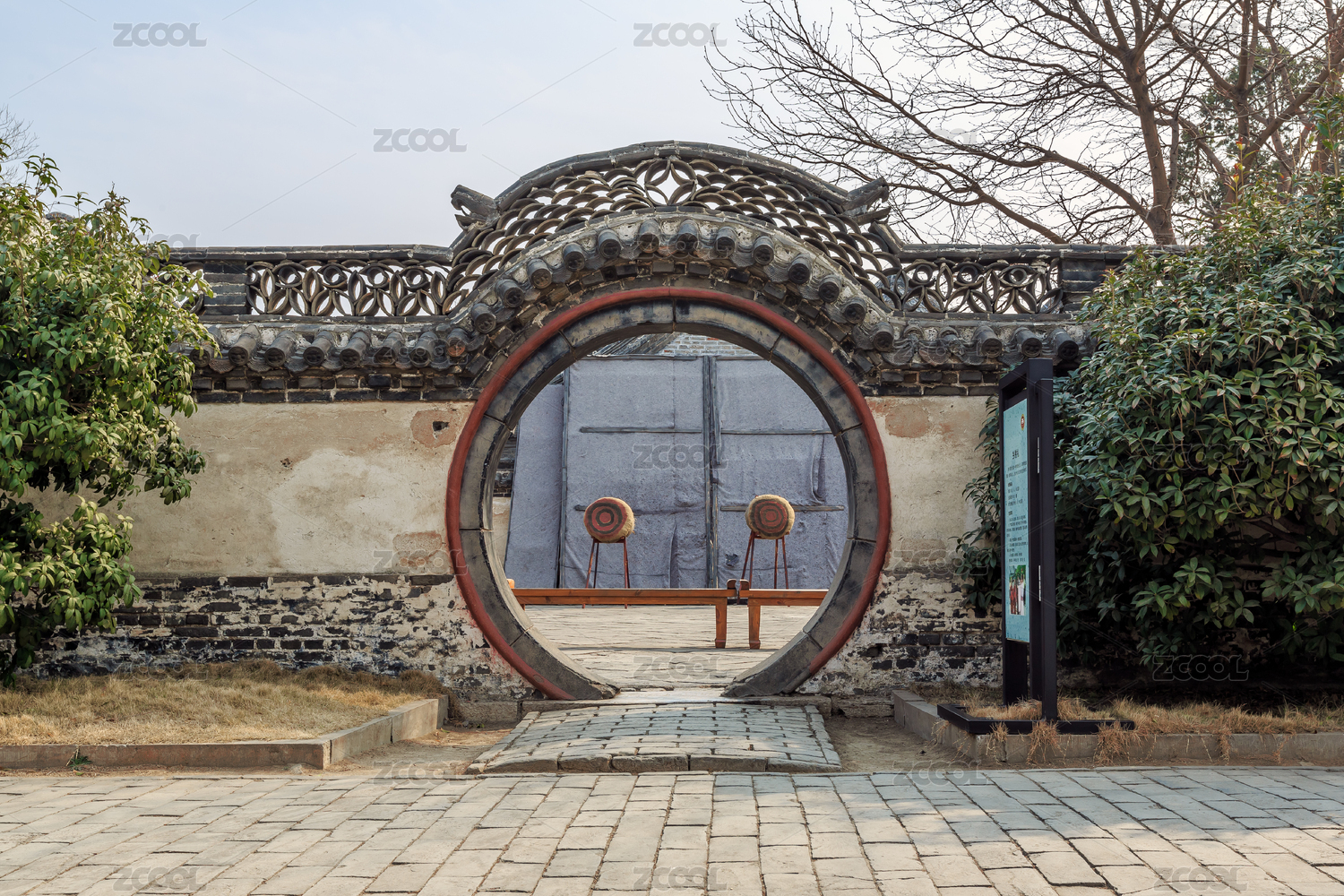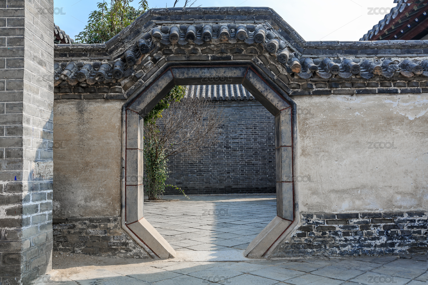 山東省鄒城市孟子孟府后院內(nèi)的園林門(mén)