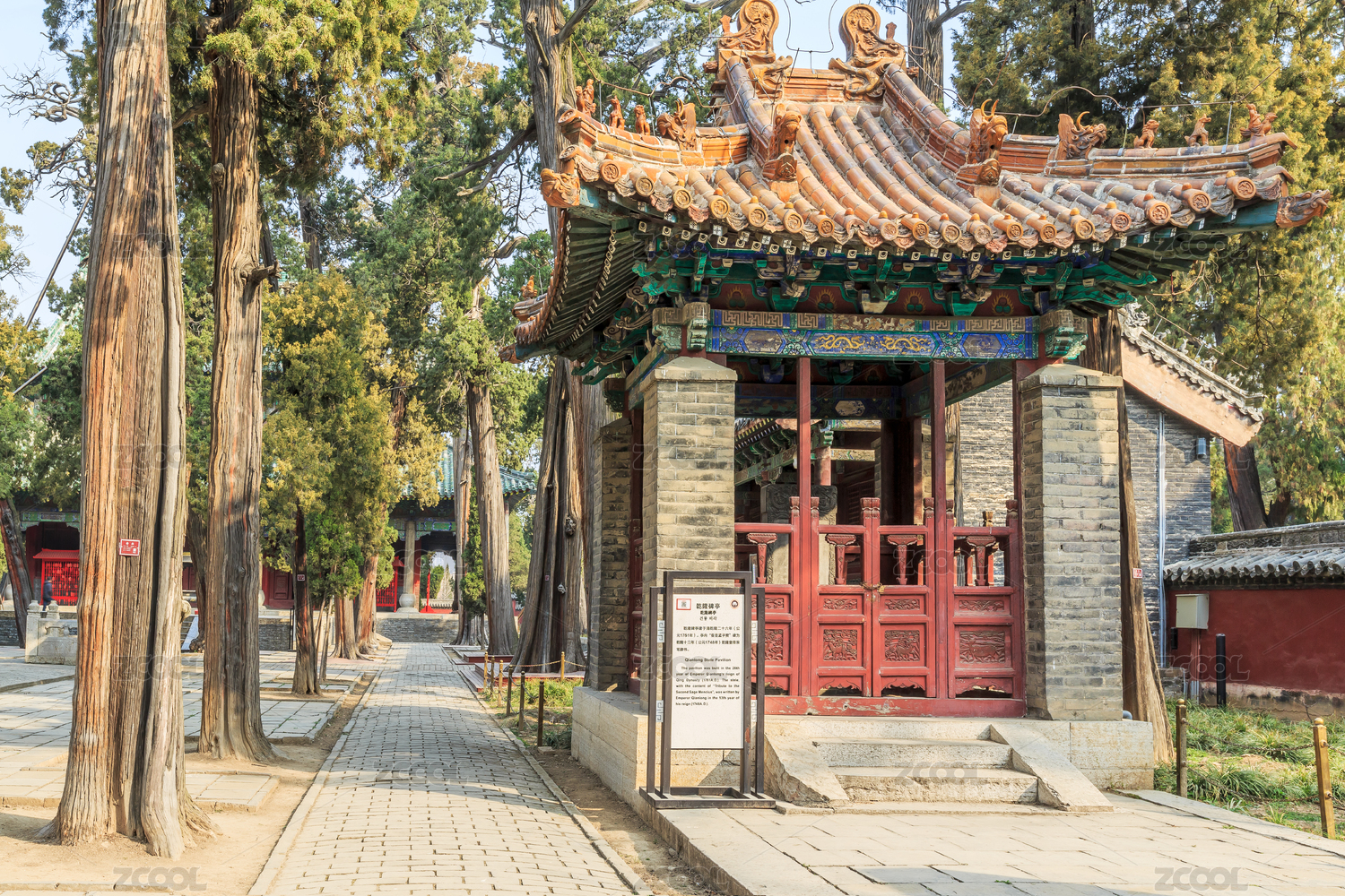 山東省鄒城市孟子孟廟內(nèi)側(cè)柏掩映下的承圣門(mén)