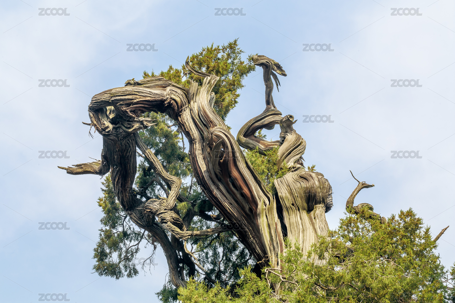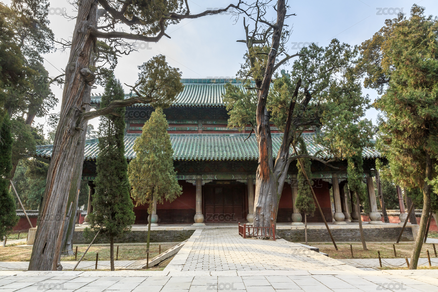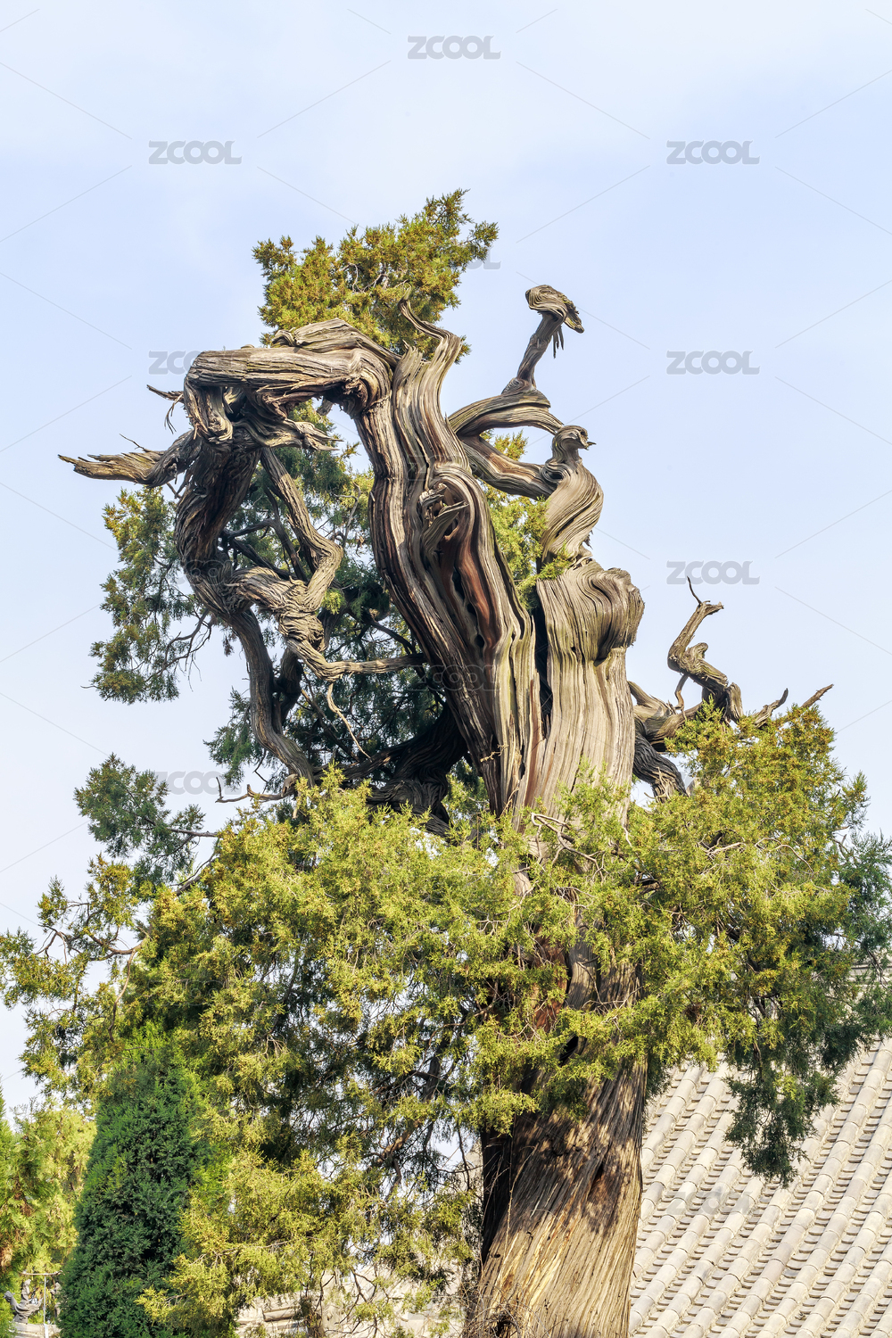 山東省鄒城市孟子孟廟寢殿前的古檜柏