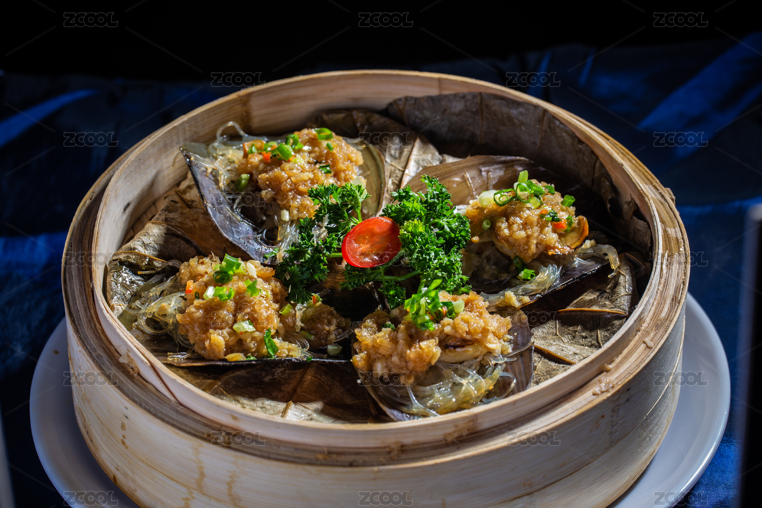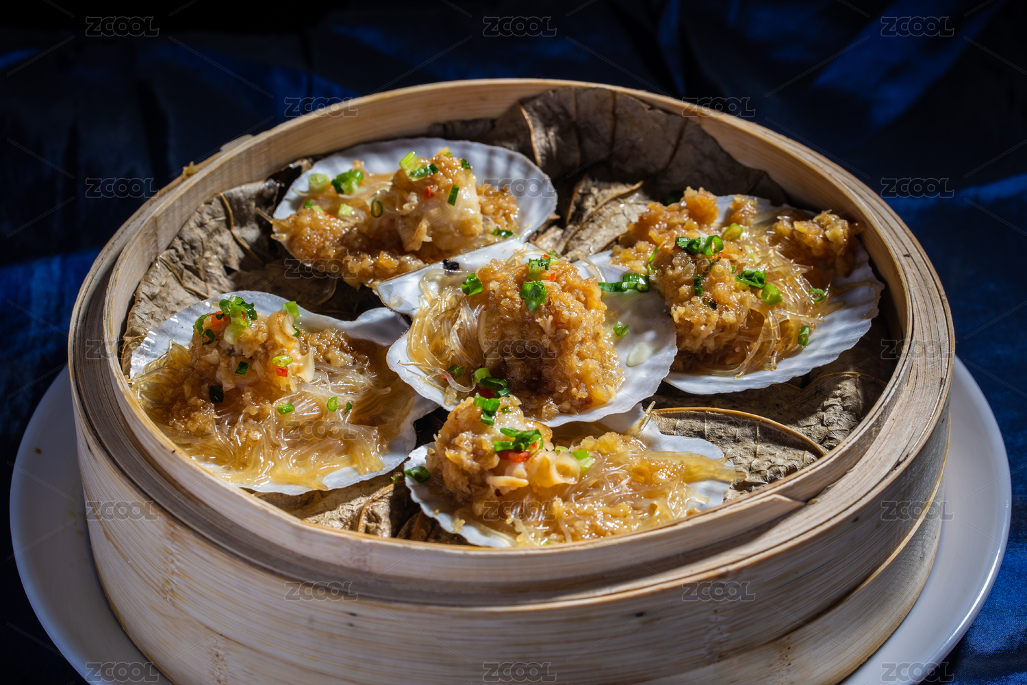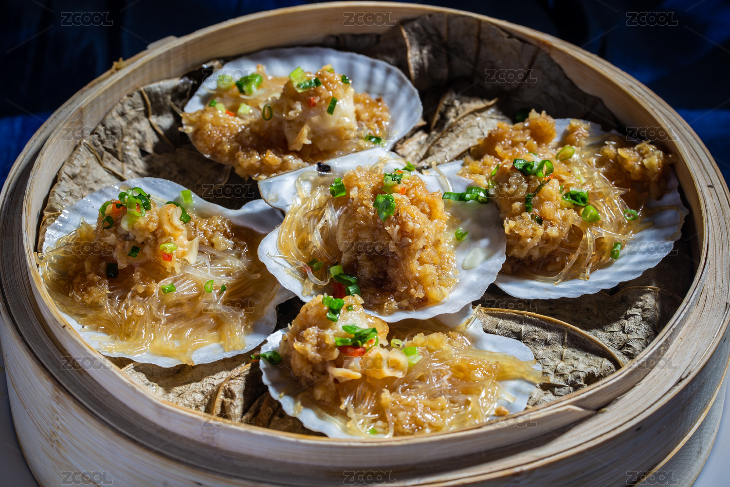 蒸籠里的清蒸海鮮蒜蓉帶子