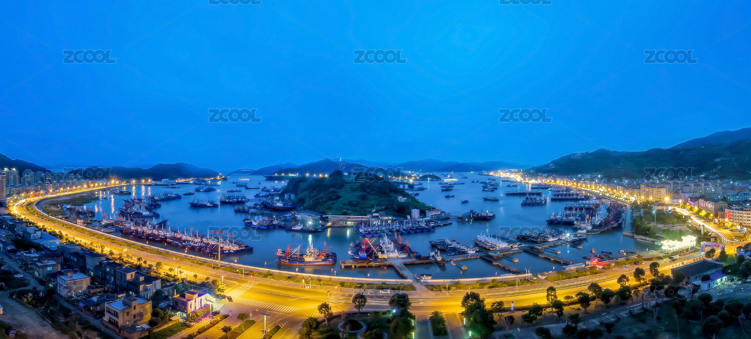中國浙江省寧波市象山漁港全景夜景風光