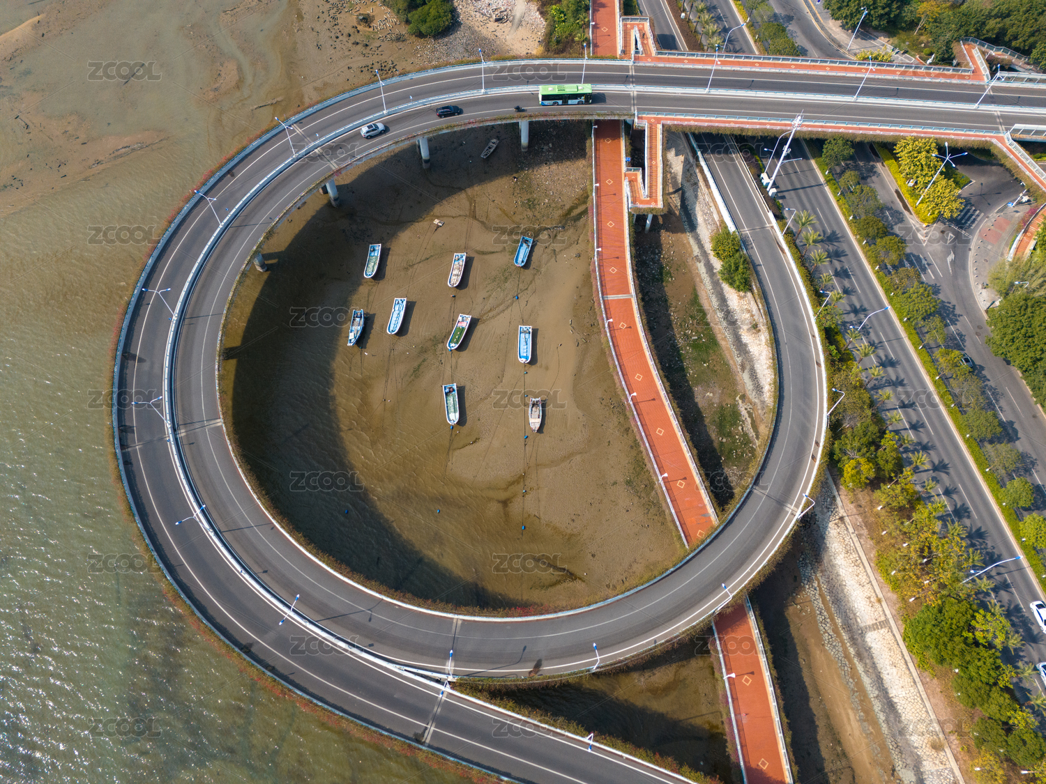 航拍廈門杏林杏濱路沿海環(huán)形高架橋