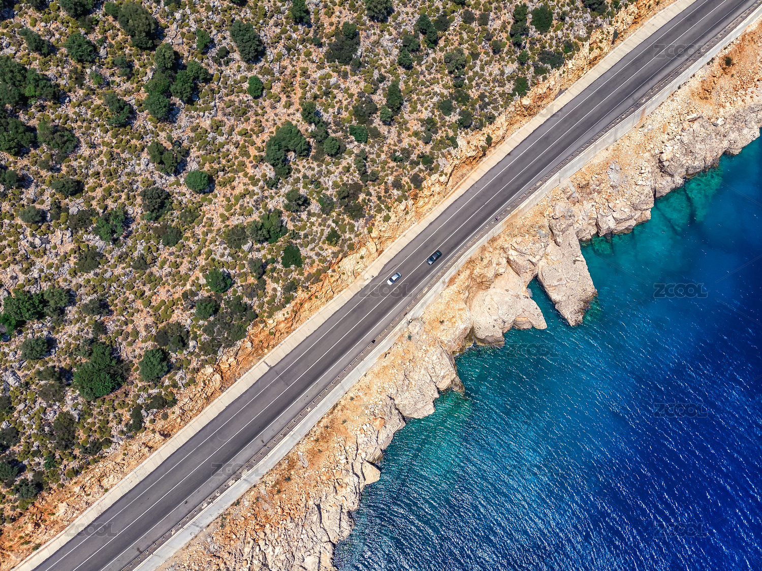 航拍俯瞰藍(lán)色土耳其最美海景公路
