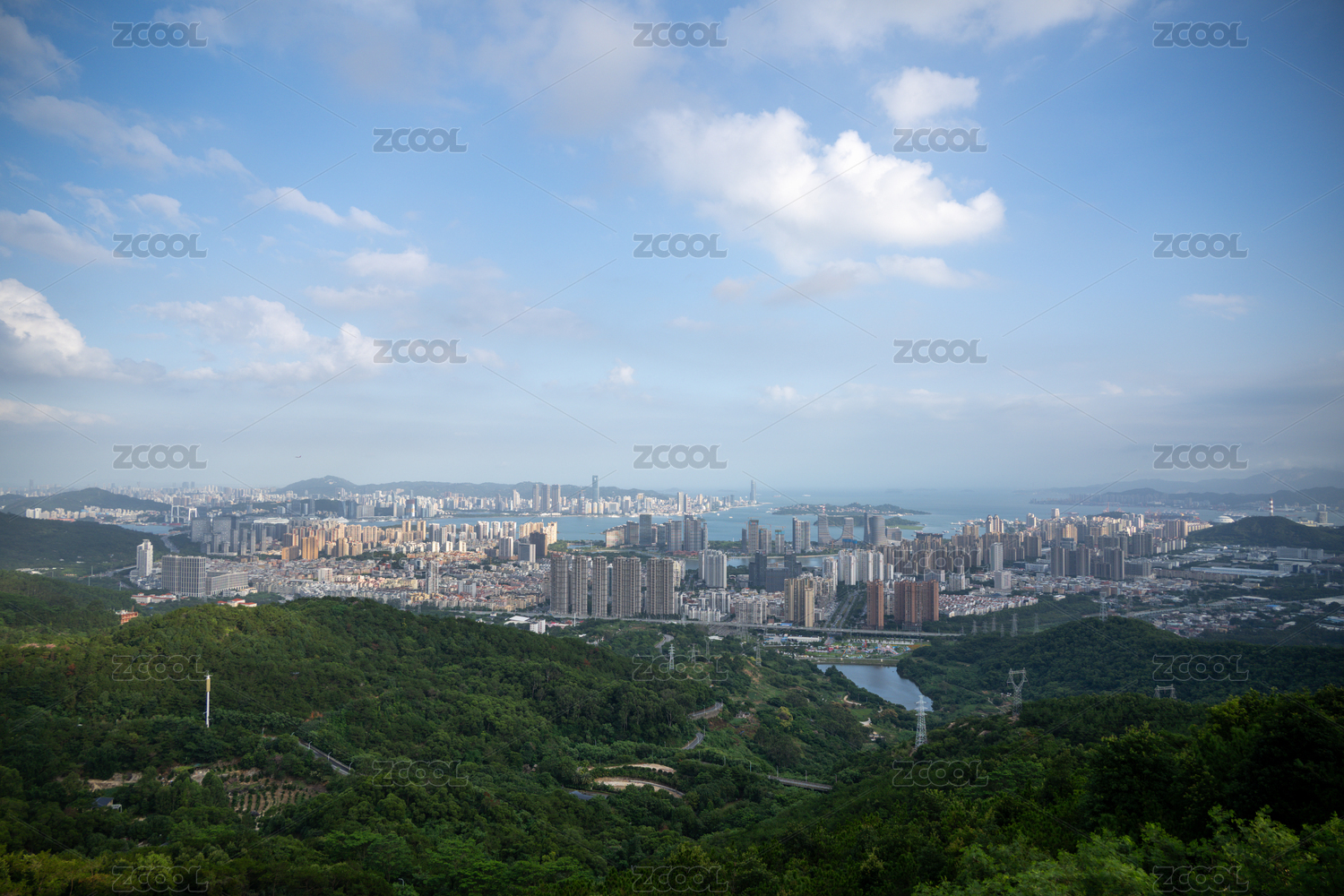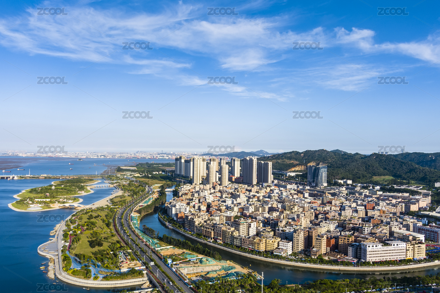 福建廈門海滄區(qū)城市天際線與海灣風光