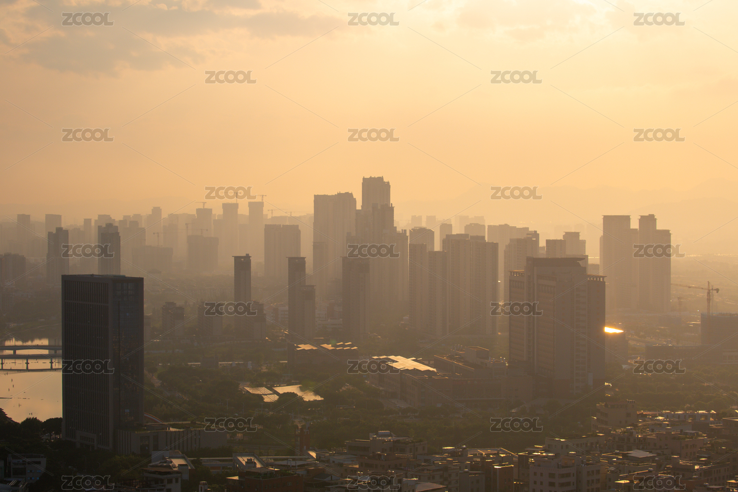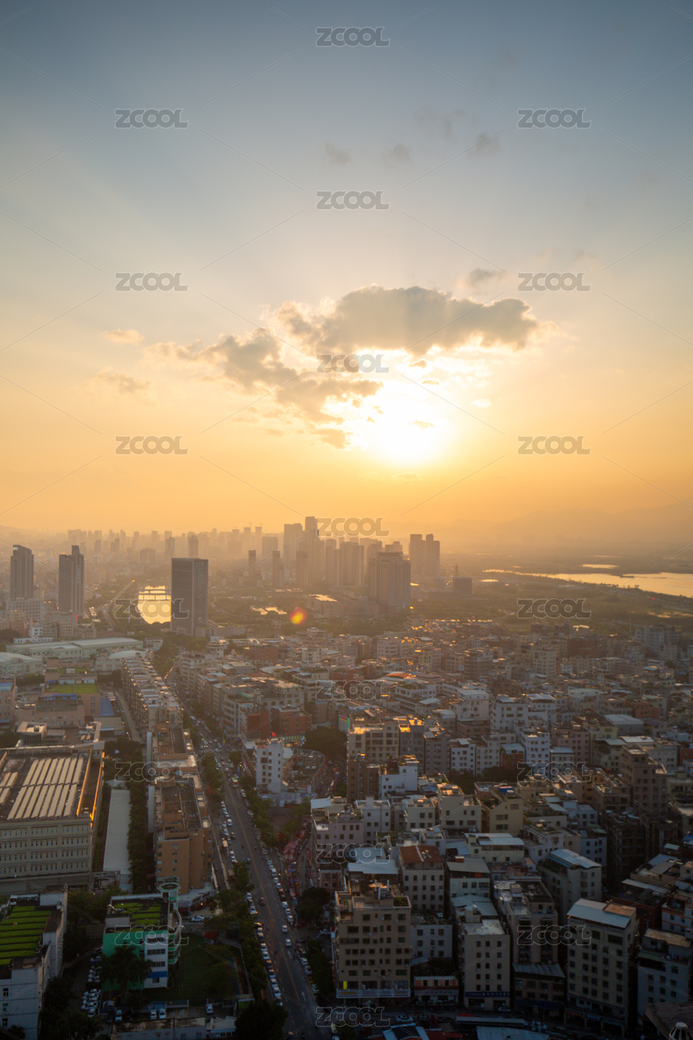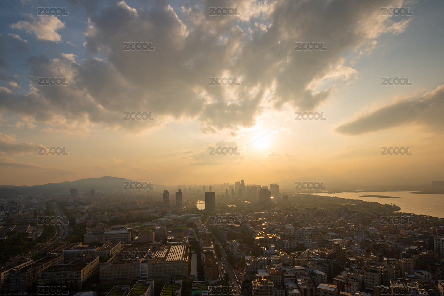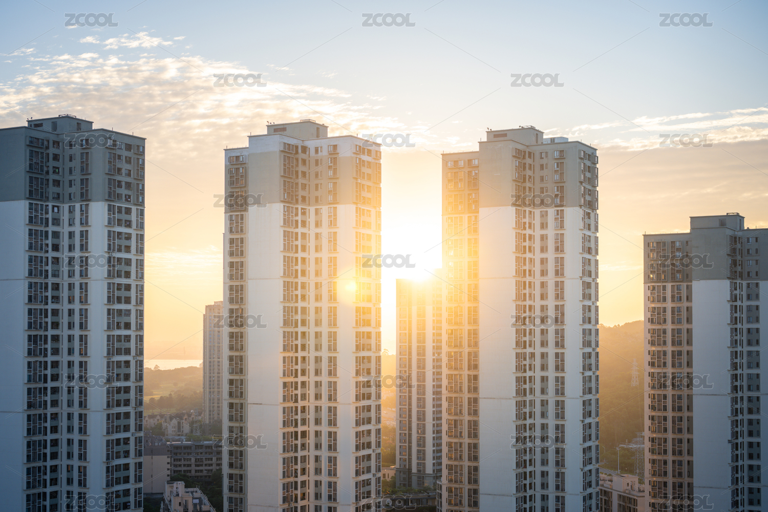 廈門海滄區(qū)城市高樓在日出時分的壯麗景象