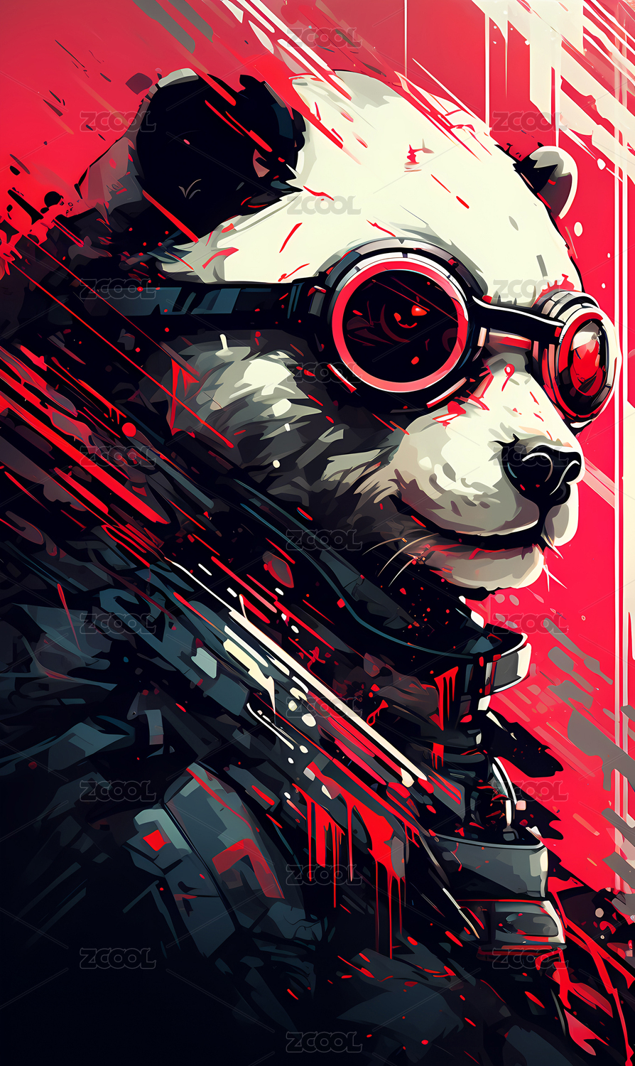 機械熊貓賽博朋克故障風