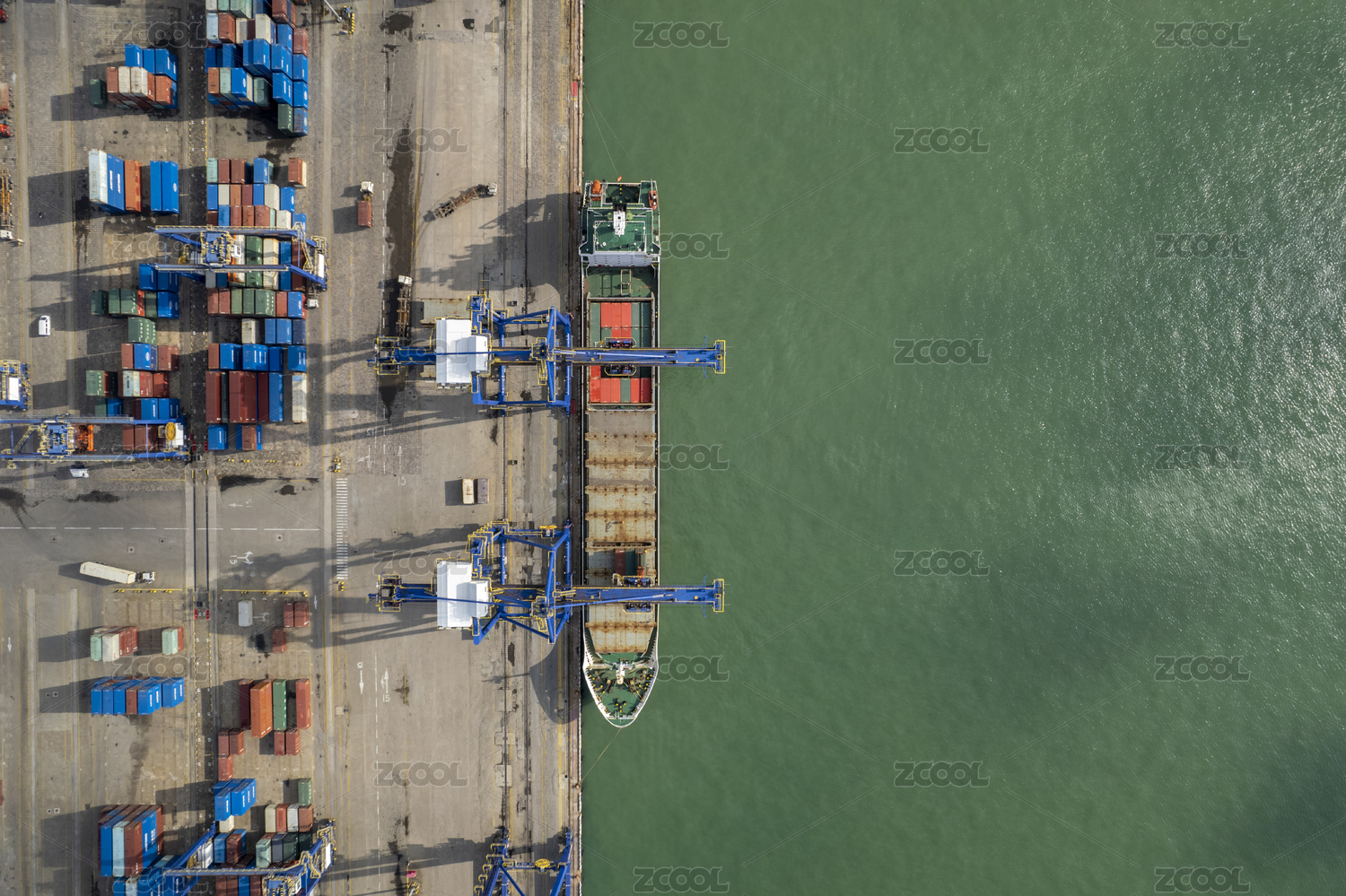 海口港集裝箱碼頭貨船裝卸貨物航拍