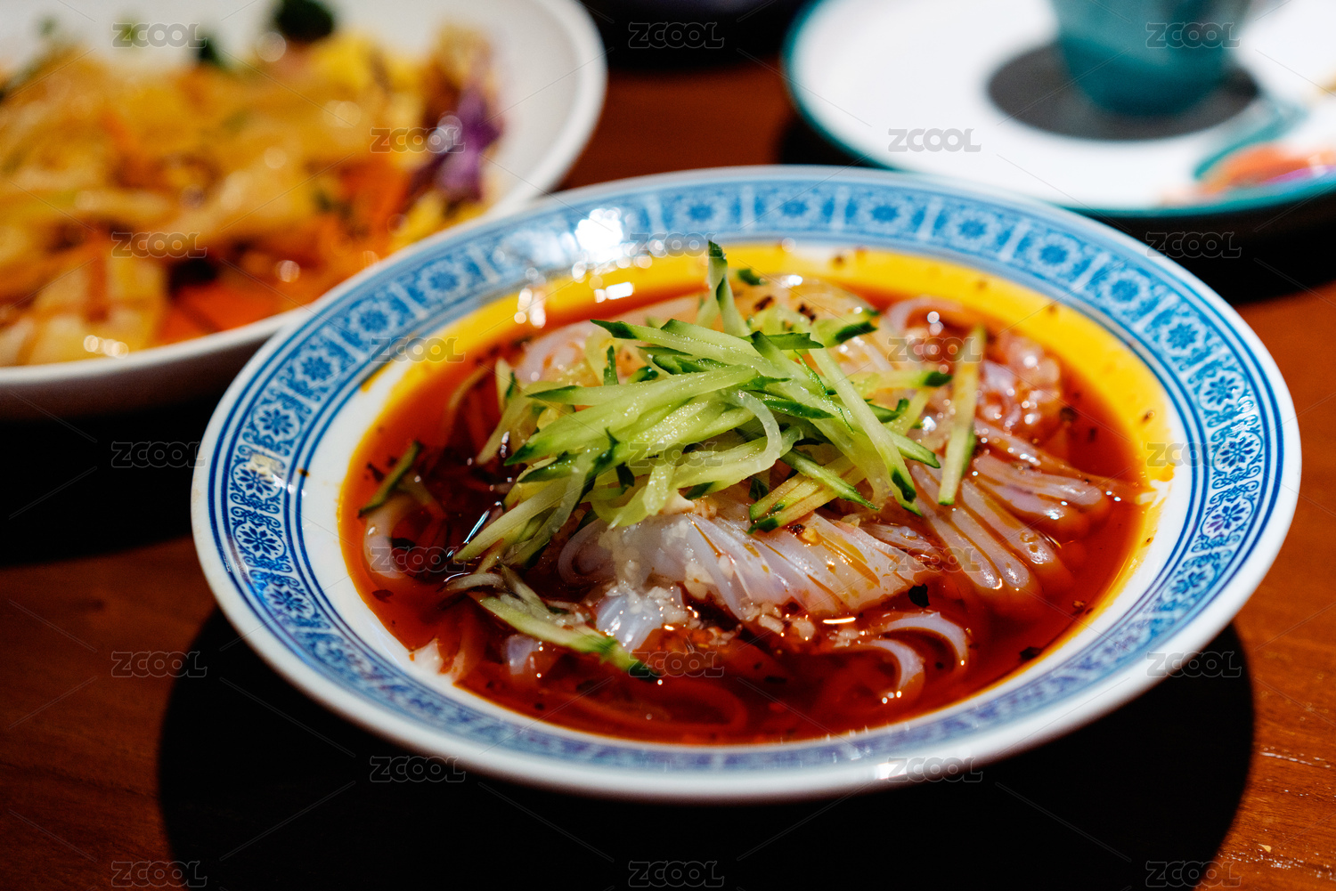 放在桌面上的一碗加了辣椒的米皮