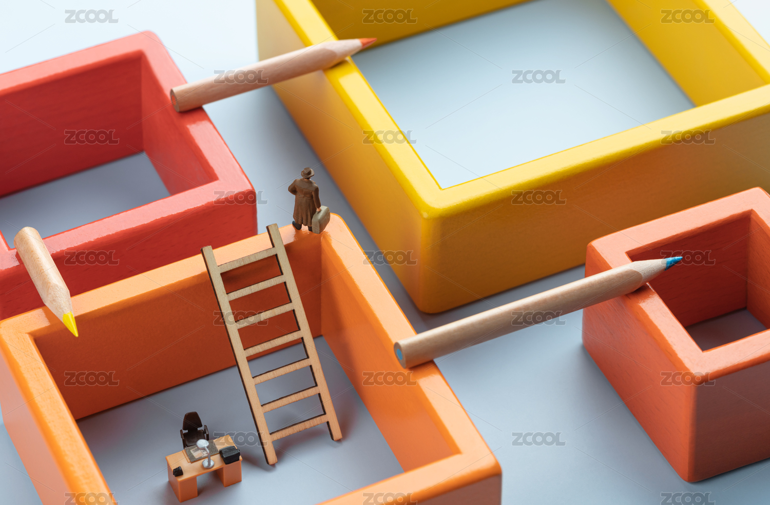 格子辦公室鉛筆橋跳槽的選擇彩色幾何體