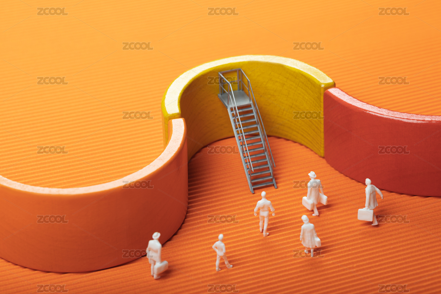 微縮創(chuàng)意暖色漸變弧型墻壁梯子圍城跳槽