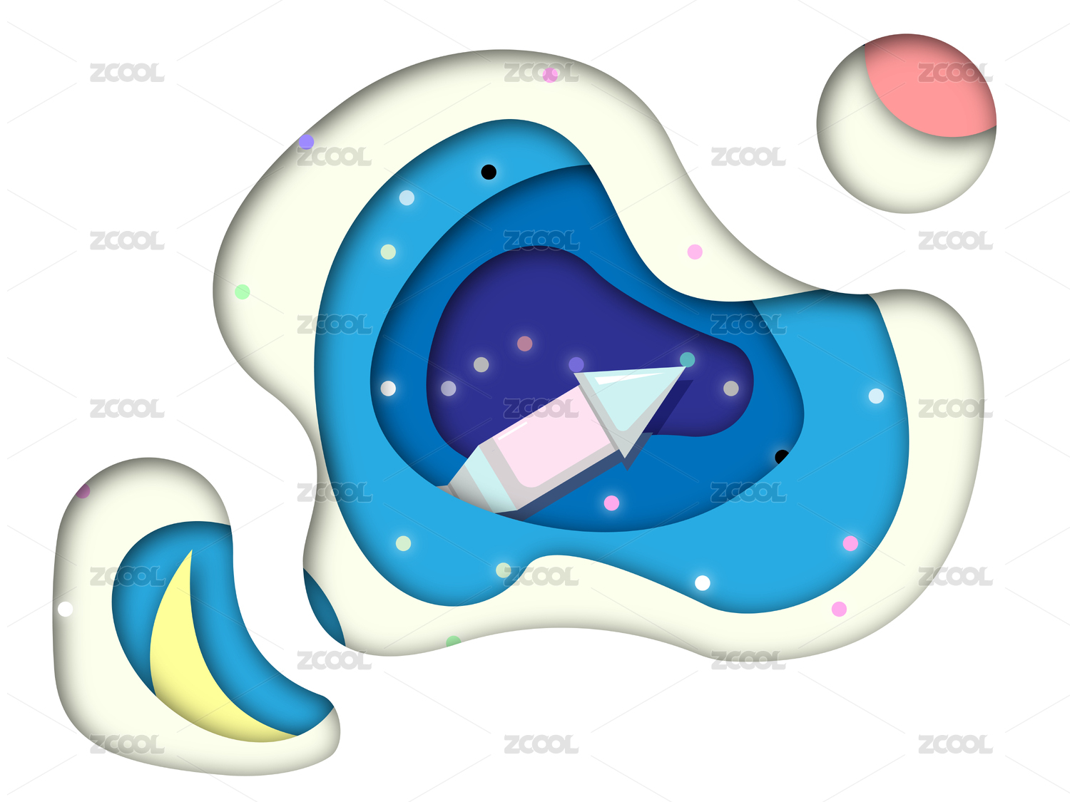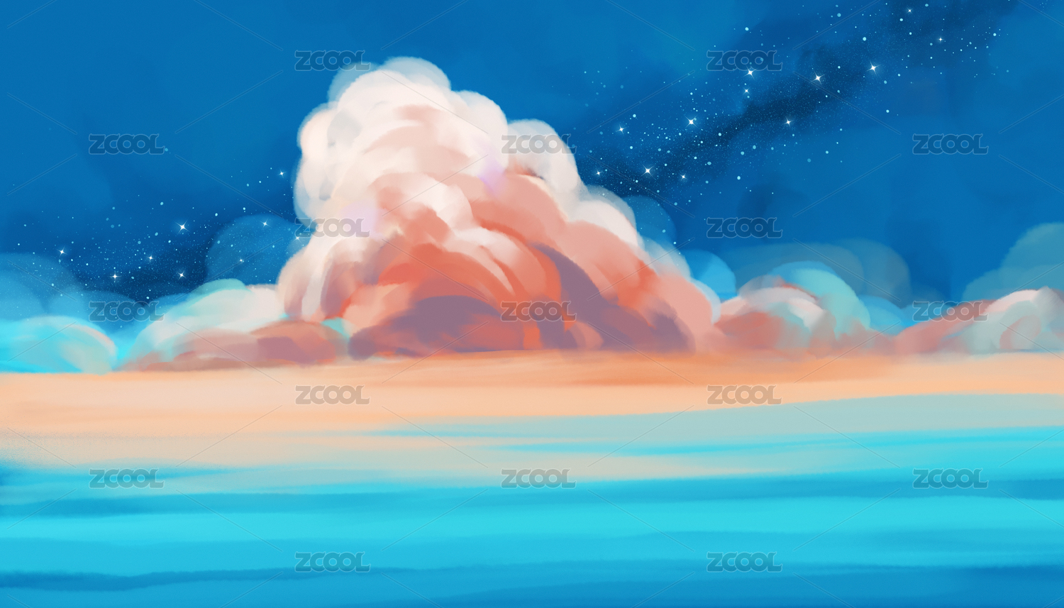 浪漫星空下有朵五顏六色的云治愈系插畫