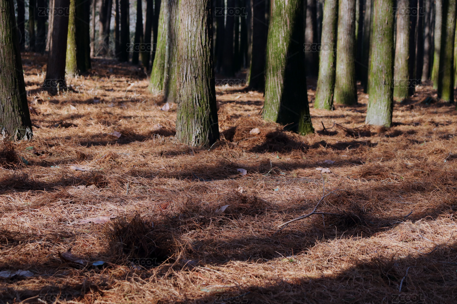 落了一地的紅色杉樹葉子