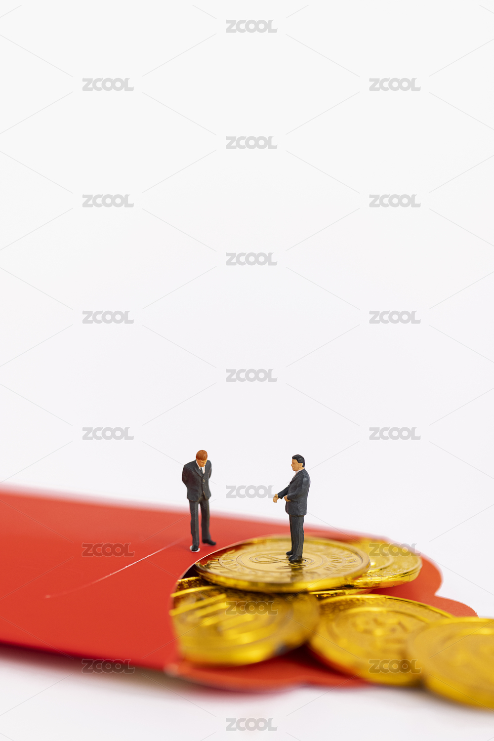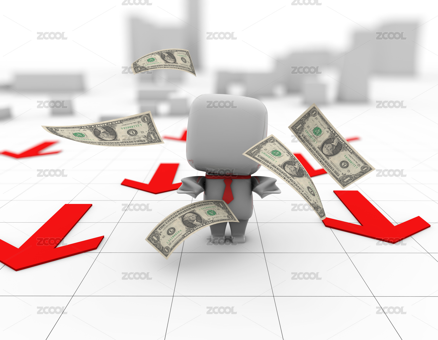 被鈔票包圍的商務(wù)小白人,年終獎金,紅色箭頭