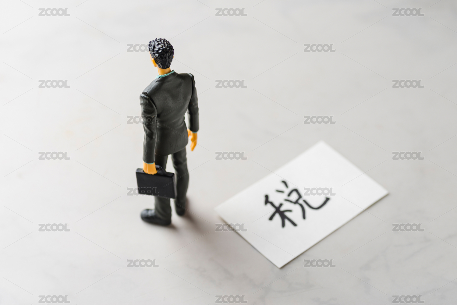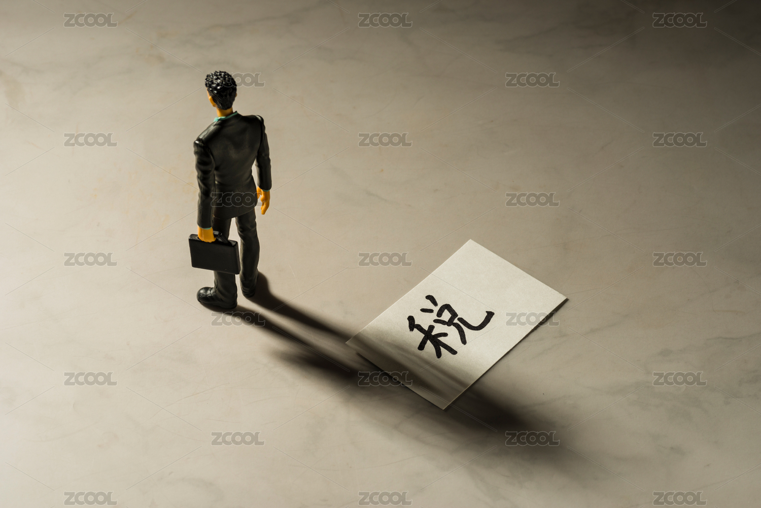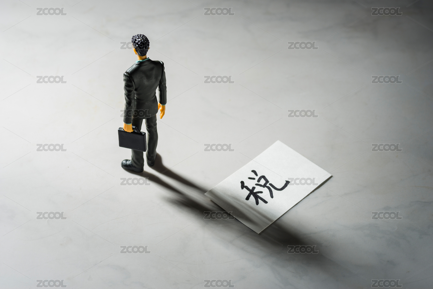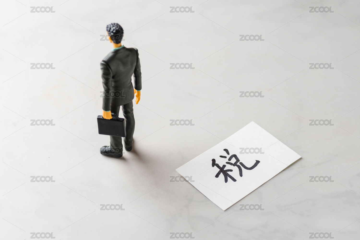 寫有稅字的卡片和身著西裝的白領(lǐng)人偶
