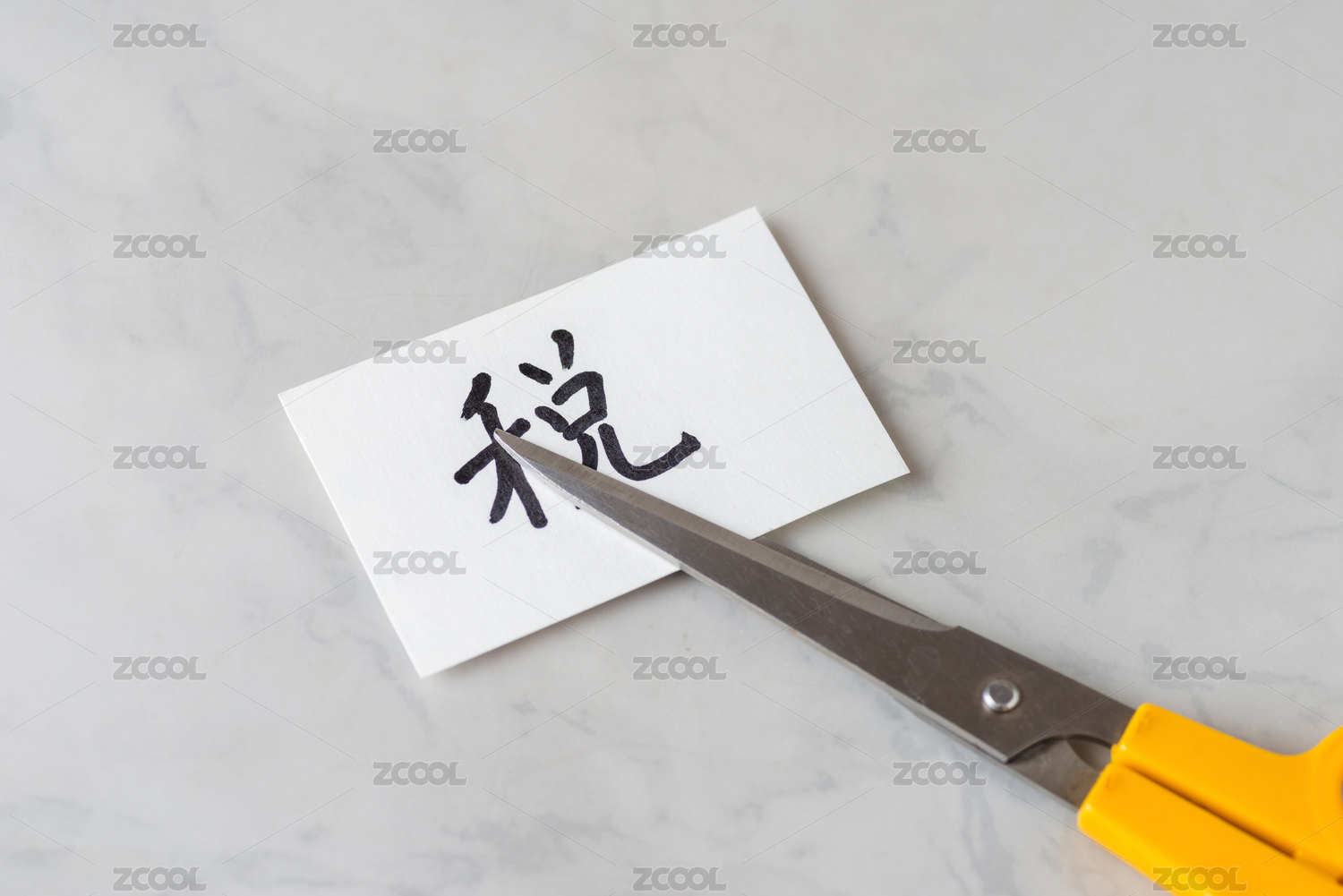 剪刀和寫有稅字的卡片減稅創(chuàng)意
