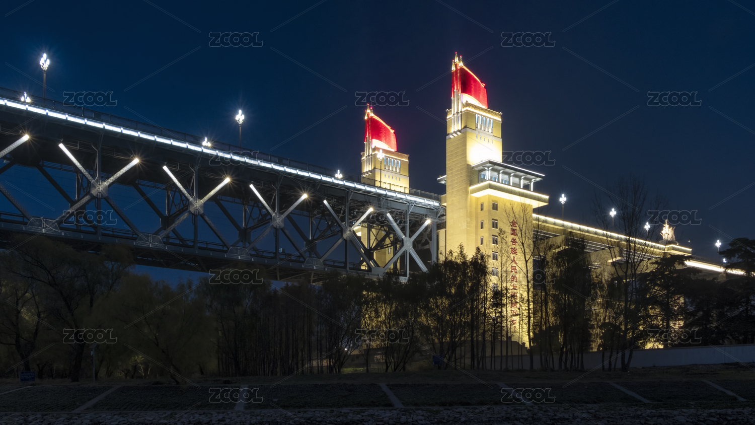 江蘇省南京市南京長江大橋橋頭堡夜景