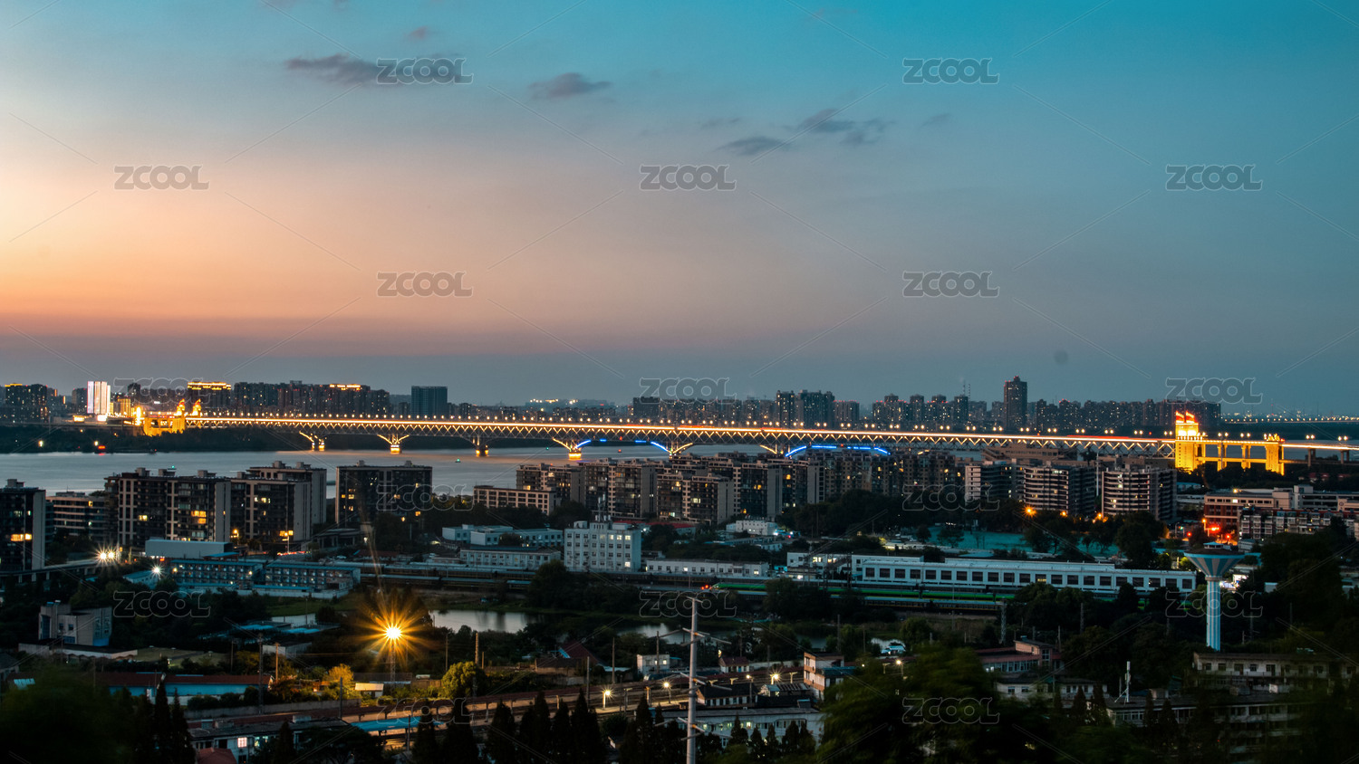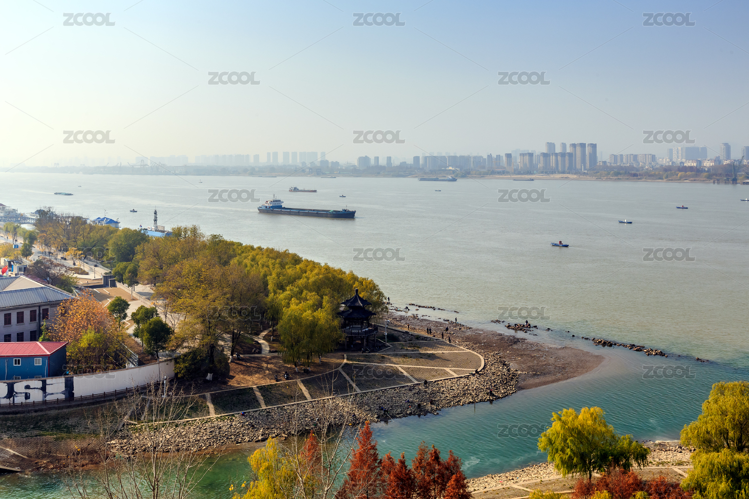 夕陽下的武漢長江風光