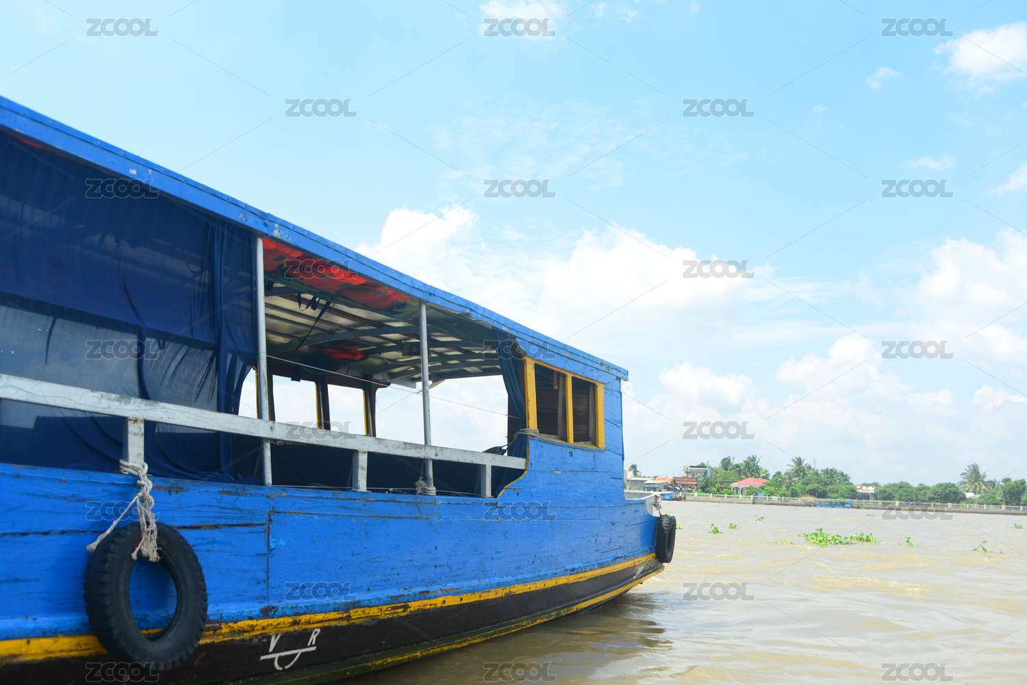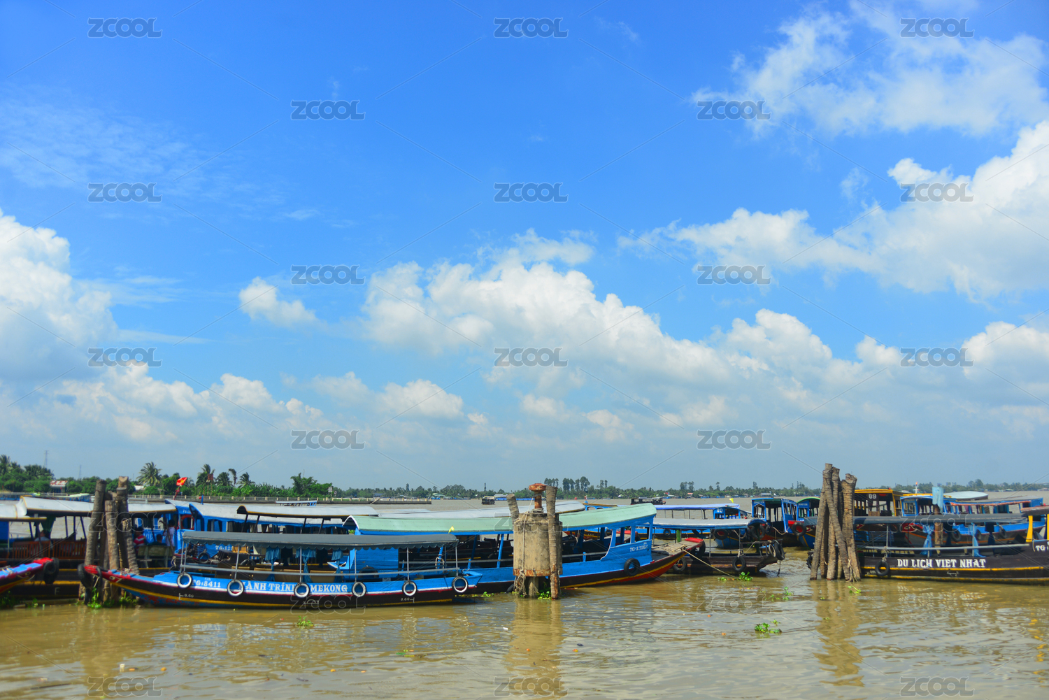 越南美托市九龍江風(fēng)景區(qū)碼頭上停泊的游船
