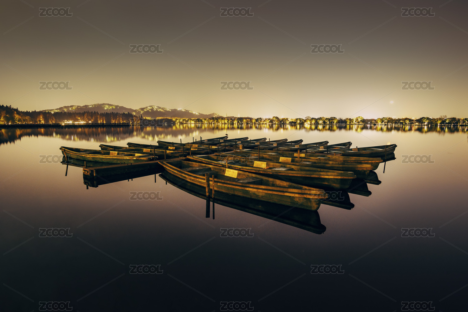中國(guó)浙江杭州西湖,碼頭停泊的游船