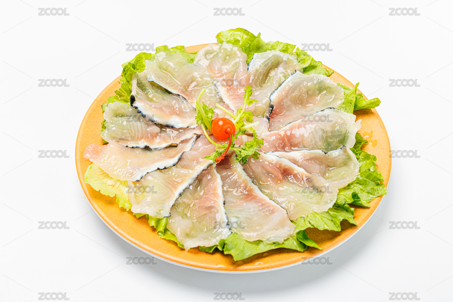 桌子白盤里的四川重慶火鍋菜品生魚肉片